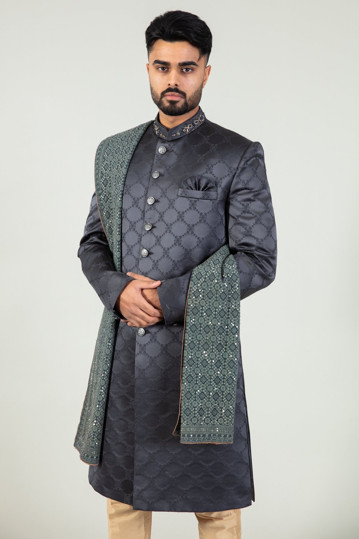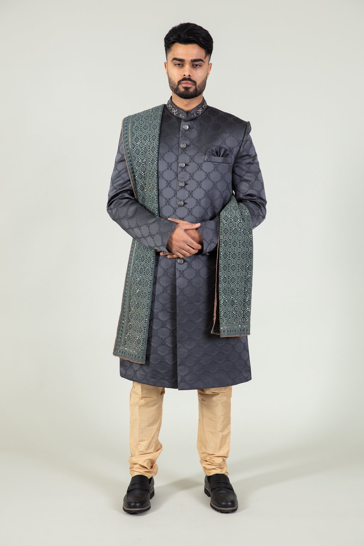 Men’s luxury embroidered sherwani with a shawl