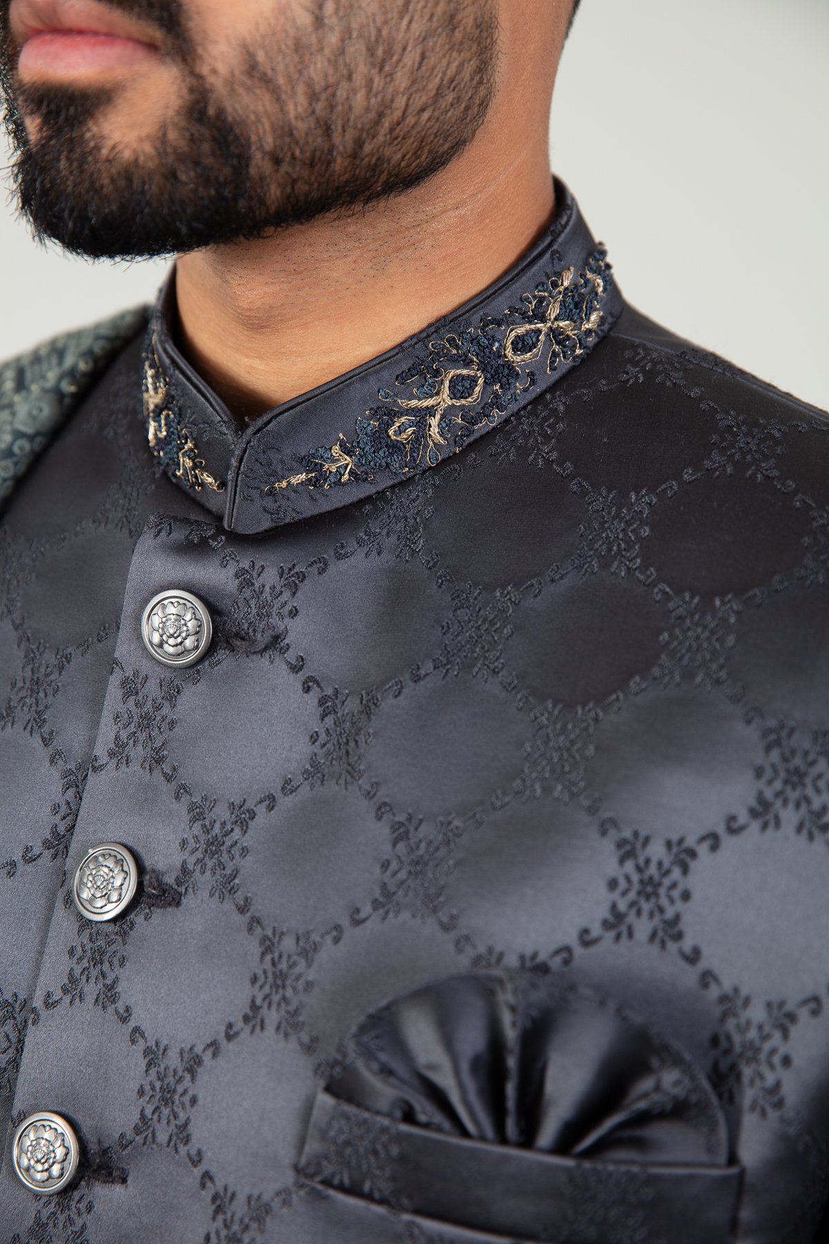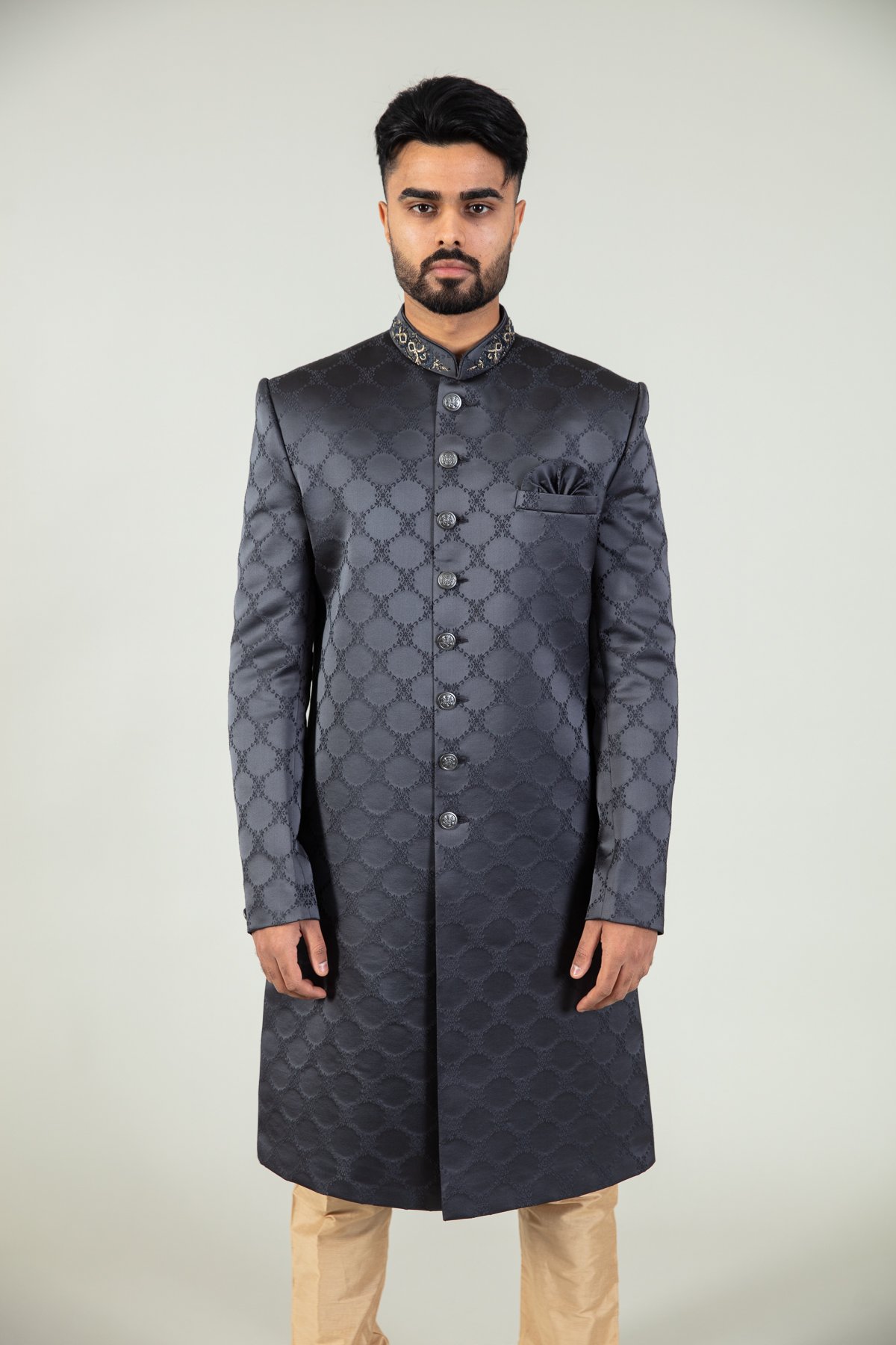 Raw silk men’s luxury embroidered sherwani