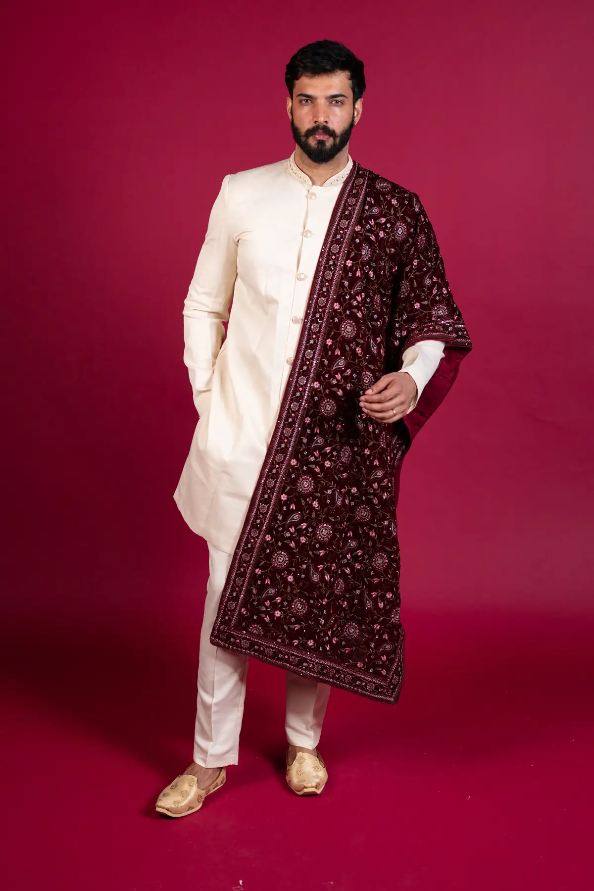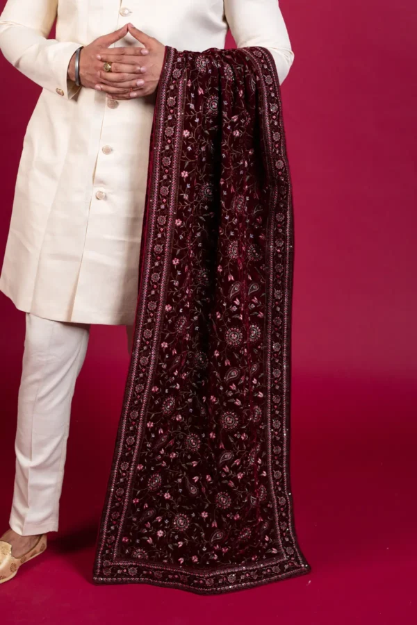 Add a touch of elegance to your winter hues wardrobe with this exquisite piece crafted from lightweight velvet material designed to be worn around the shoulders or draped as a shawl or wrap often used in more formal settings or as a decorative piece, Adorned with intricate floral weaving in the middle, They’re known for its warmth and versatility, offering a stylish and practical way to add texture and warmth to an outfit.