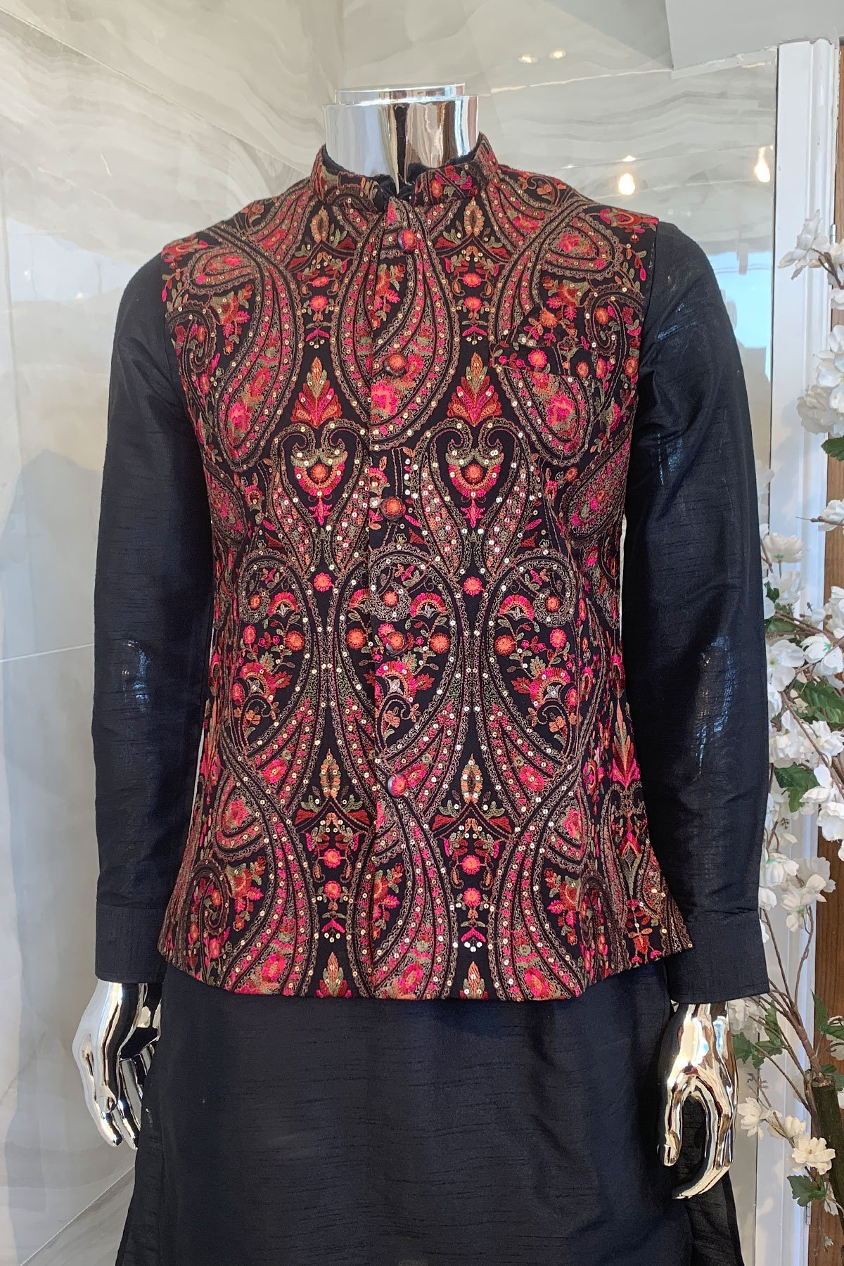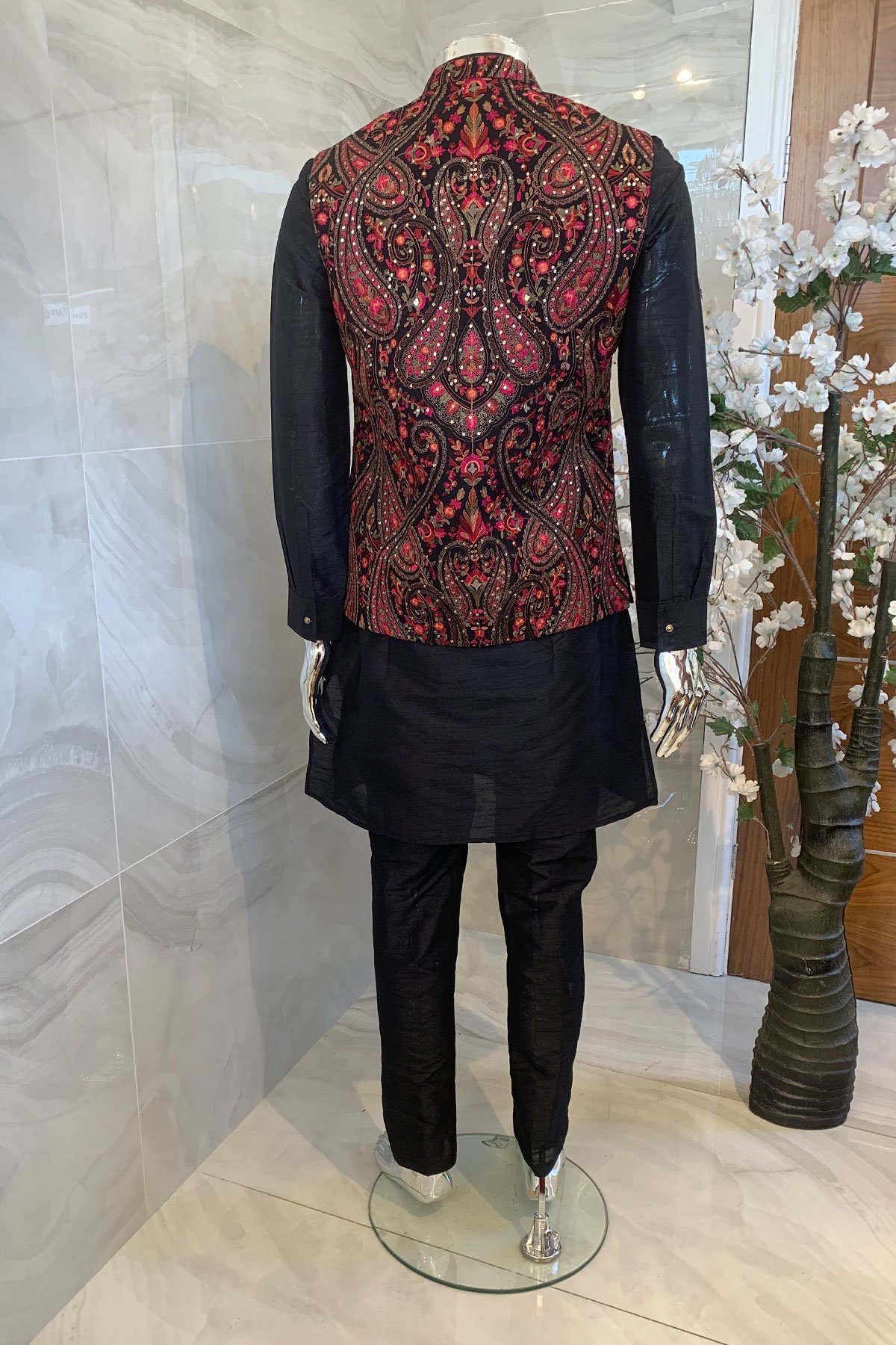 Men’s raw silk suit with embroidered waistcoat