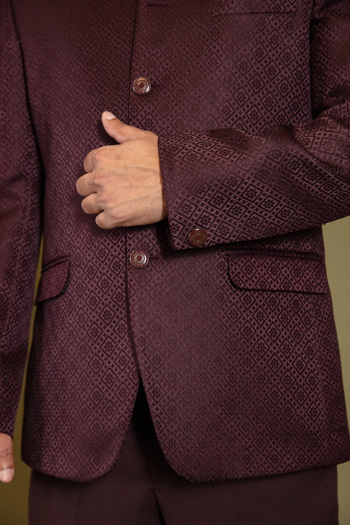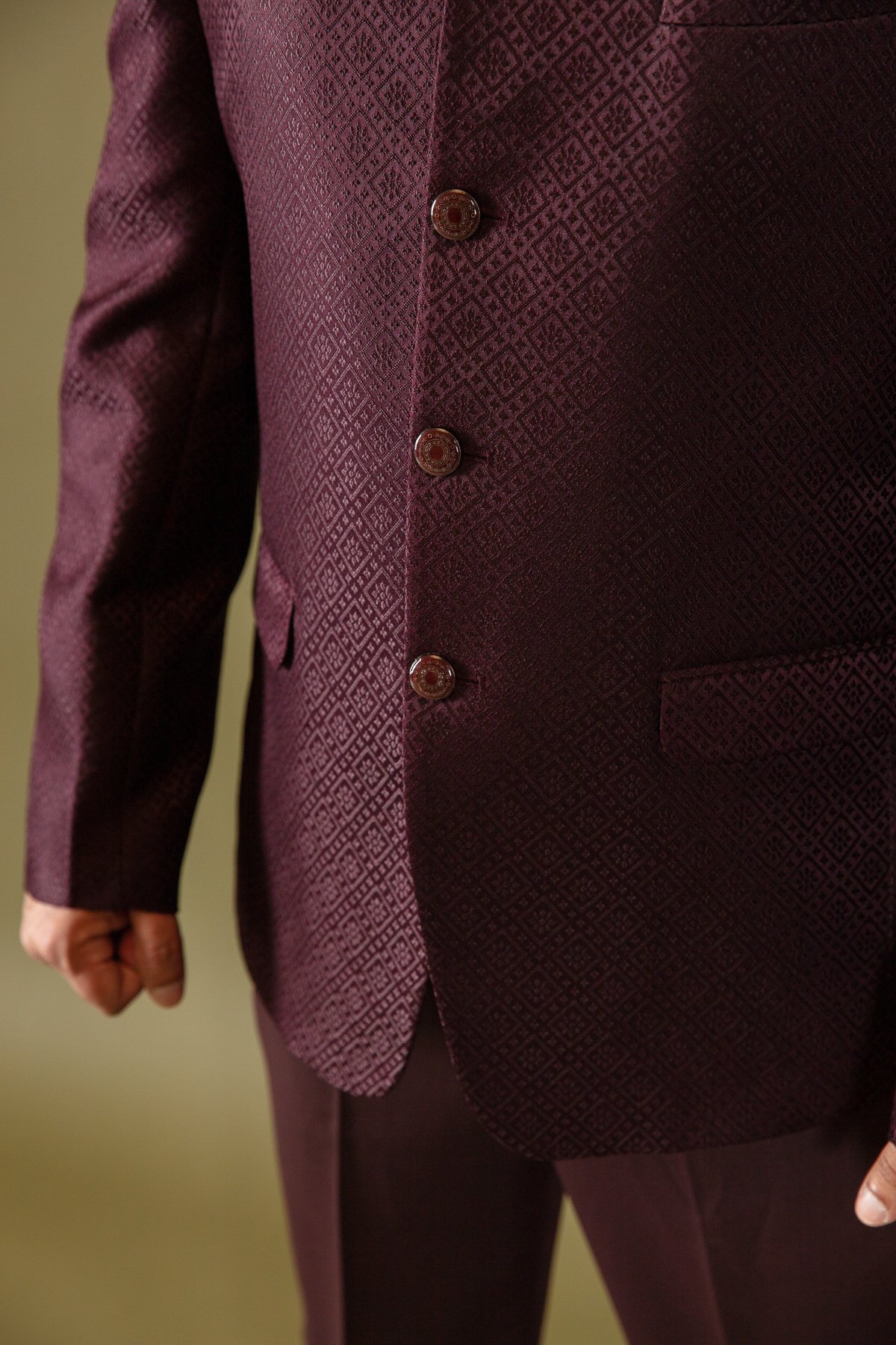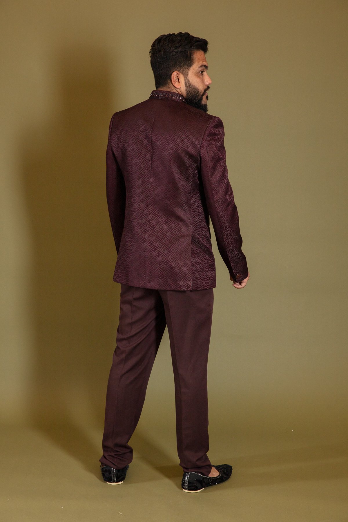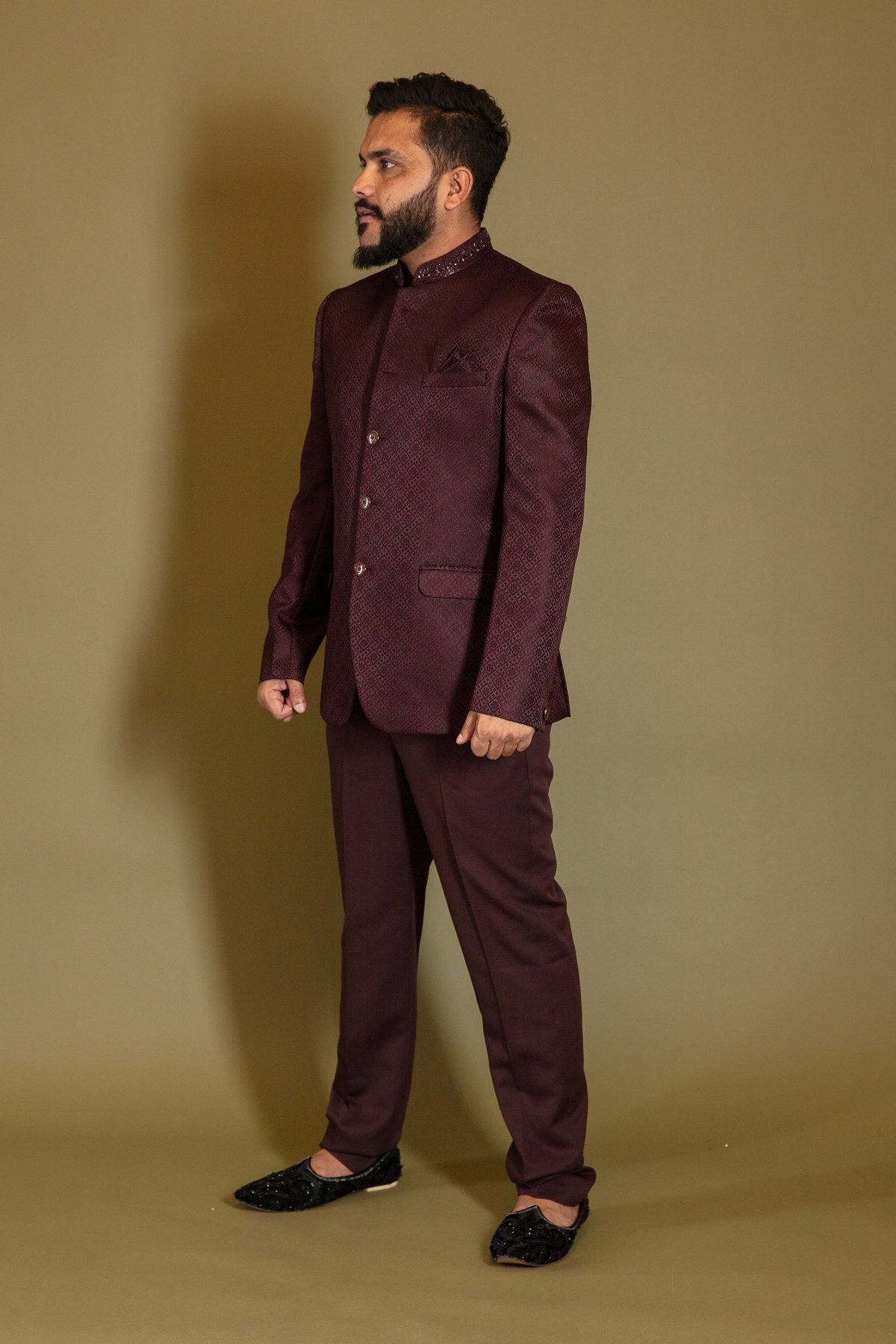 This beautiful men’s sherwani features a nehru coat designed with durability in mind, Printed patterns through out features long sleeves with a mandarin embroidered collar and button fastenings along the middle. An easy care garment that requires very little maintenance. It has been designed with plenty of functionality, jetted pockets with flaps. The look is finished with tailored trousers.