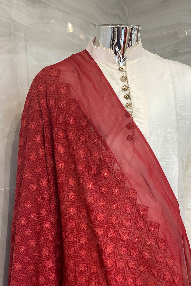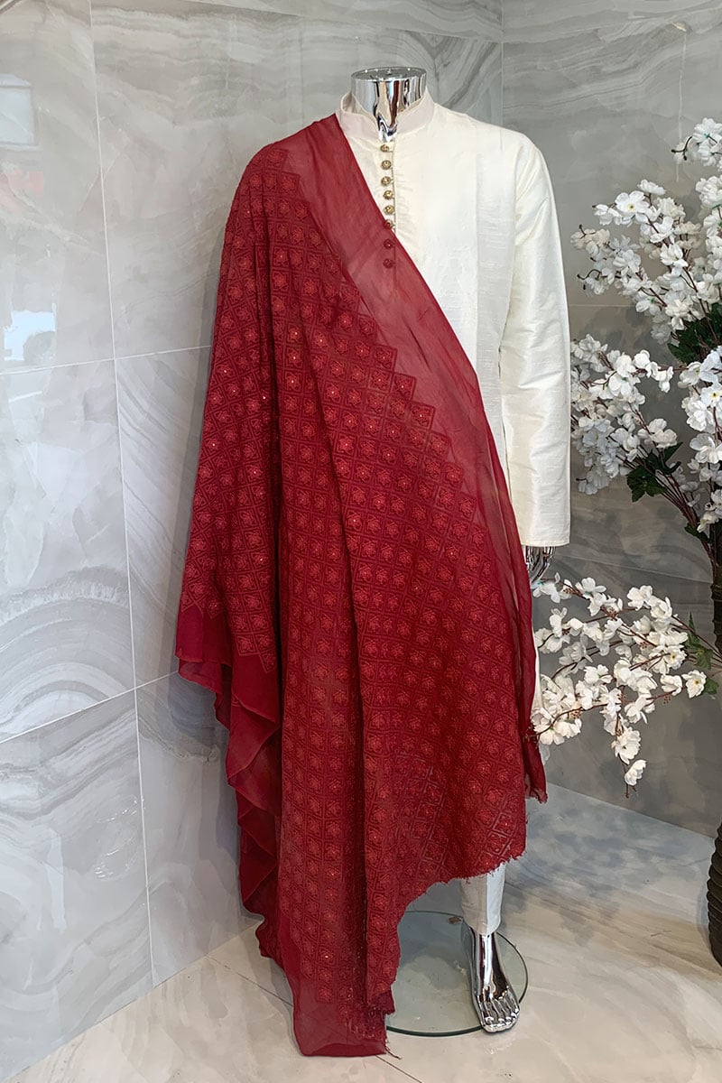 This casual men’s unstitched dupatta features thread work embroidery throughout with sequence embellishments.