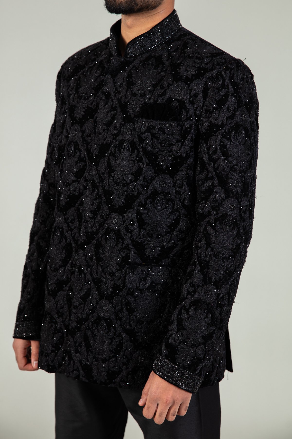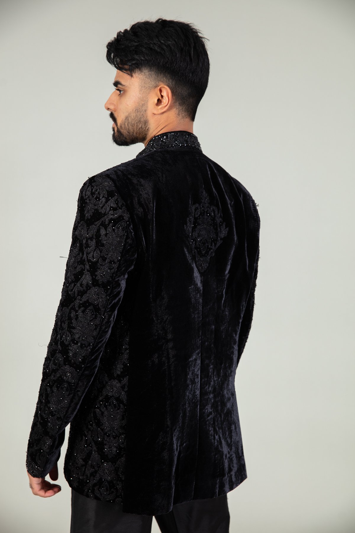 Men’s velvet embroidered sherwani coat