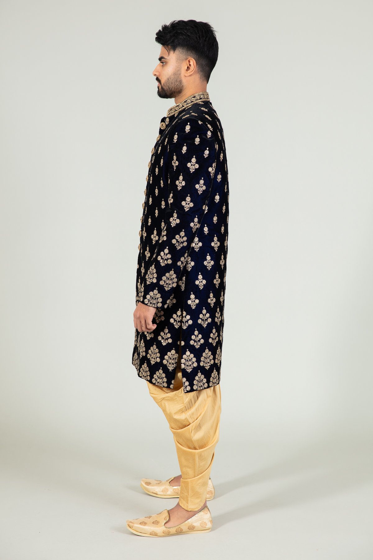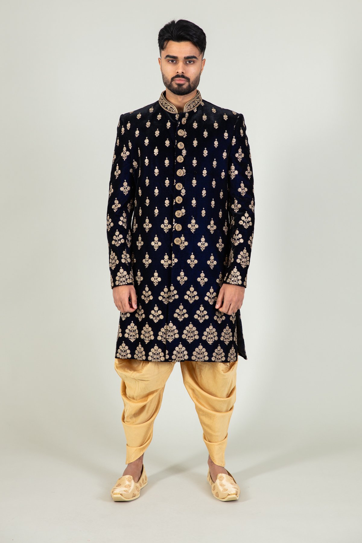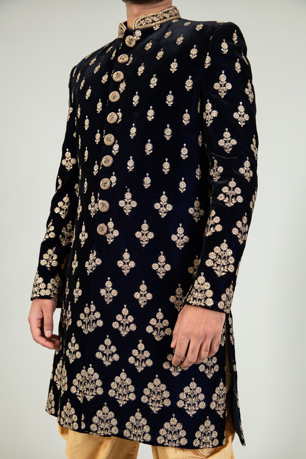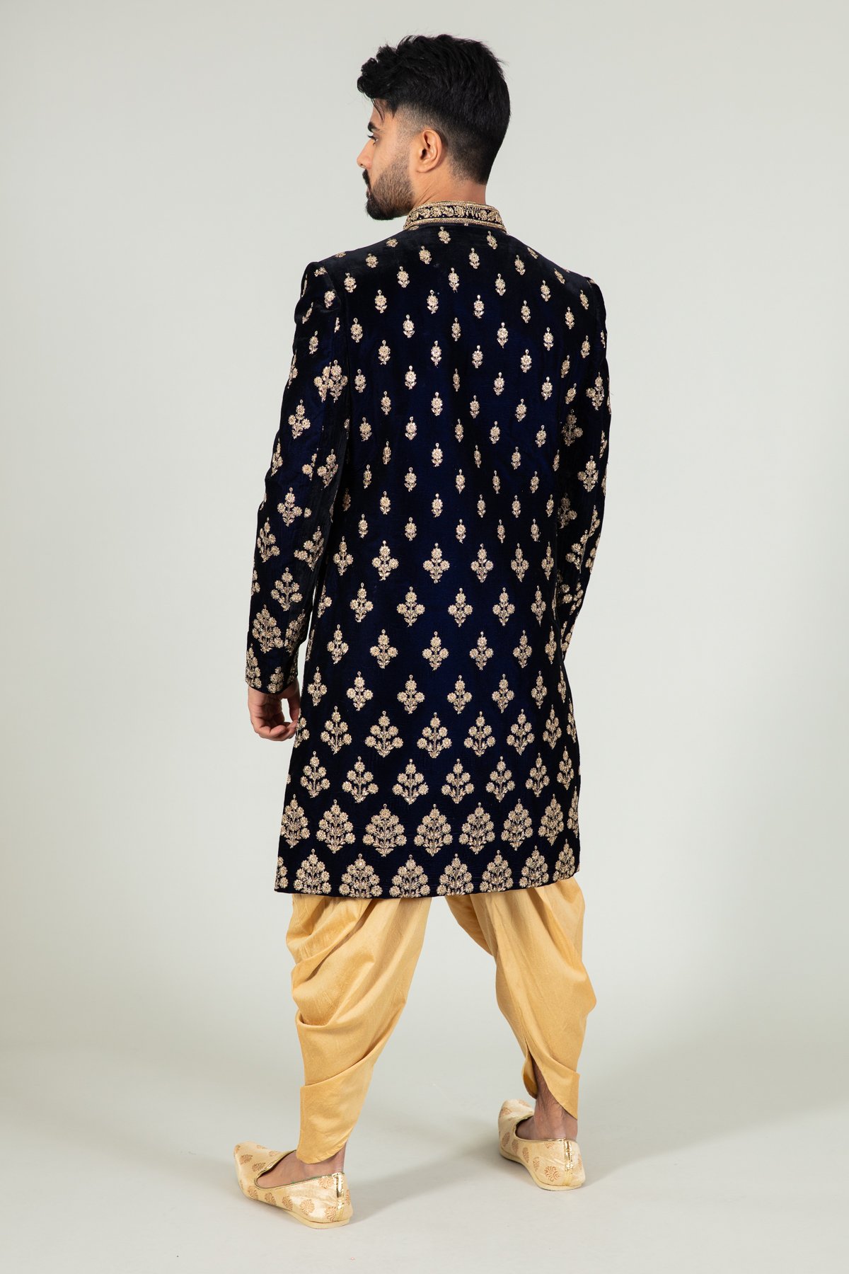 Men’s velvet sherwani with a tulip shalwar