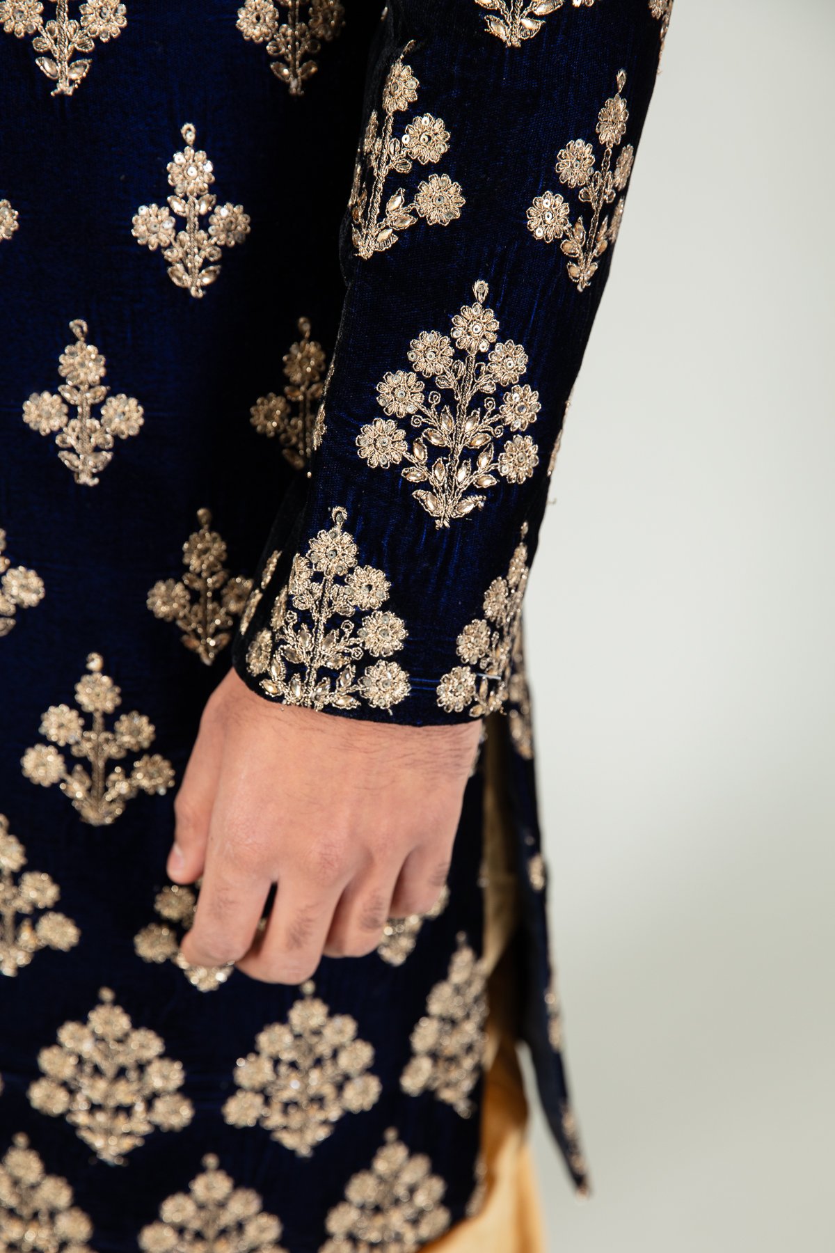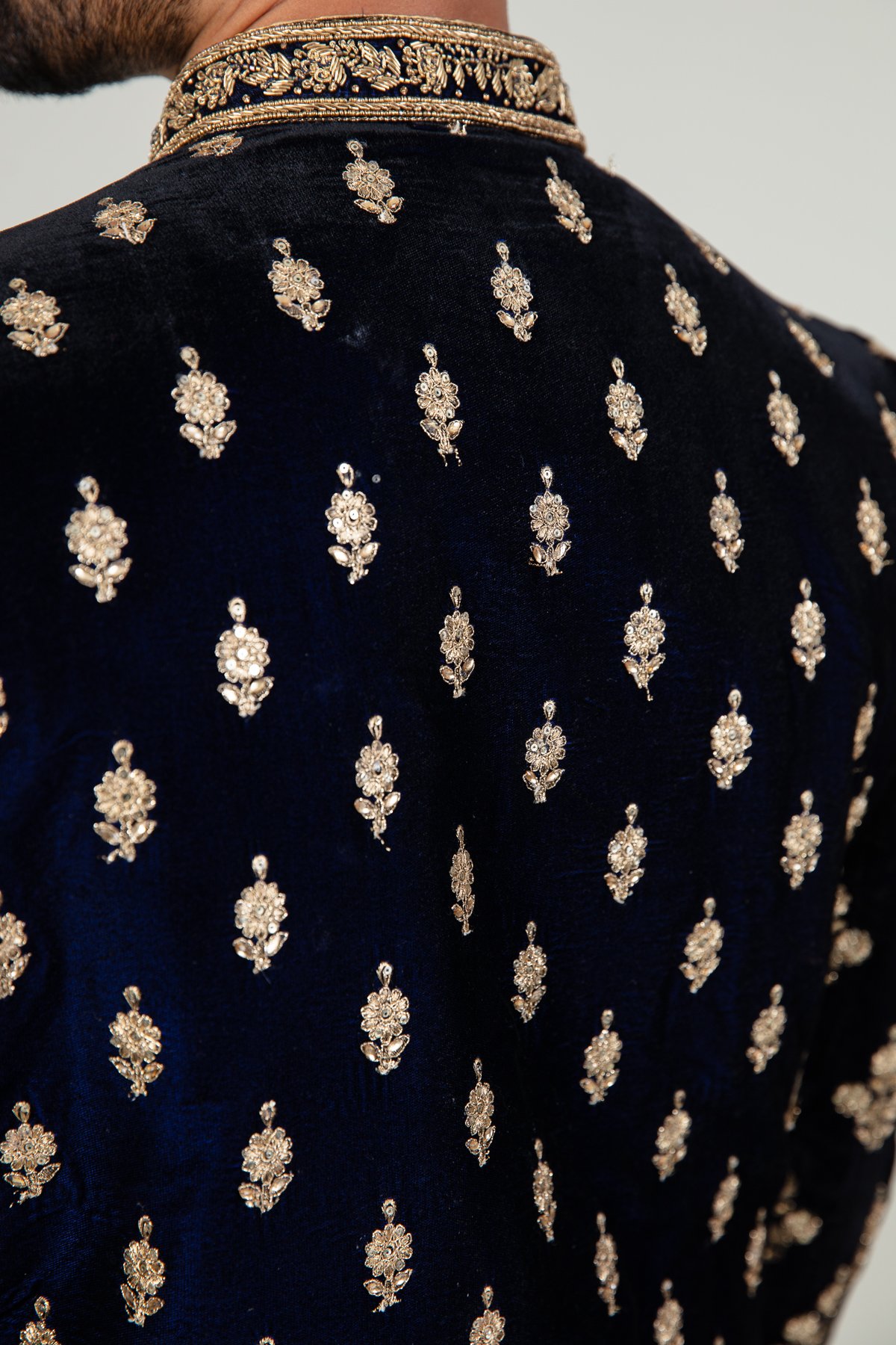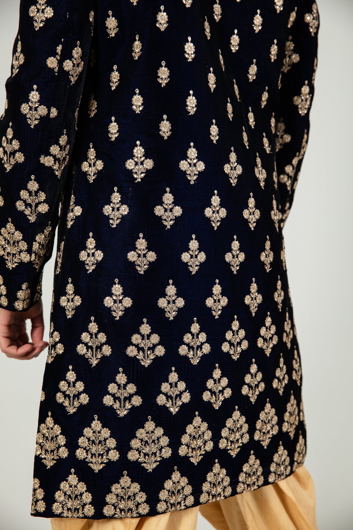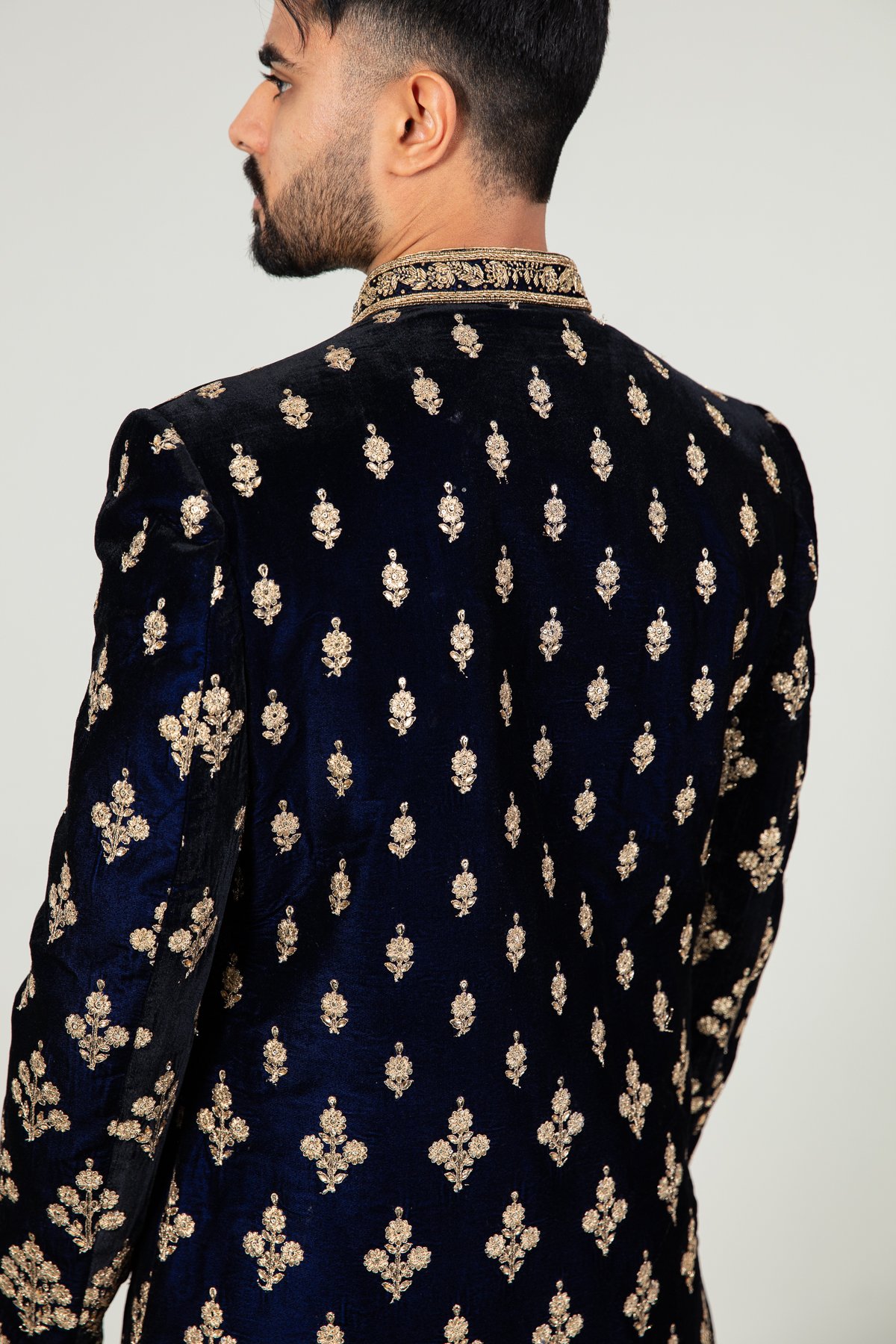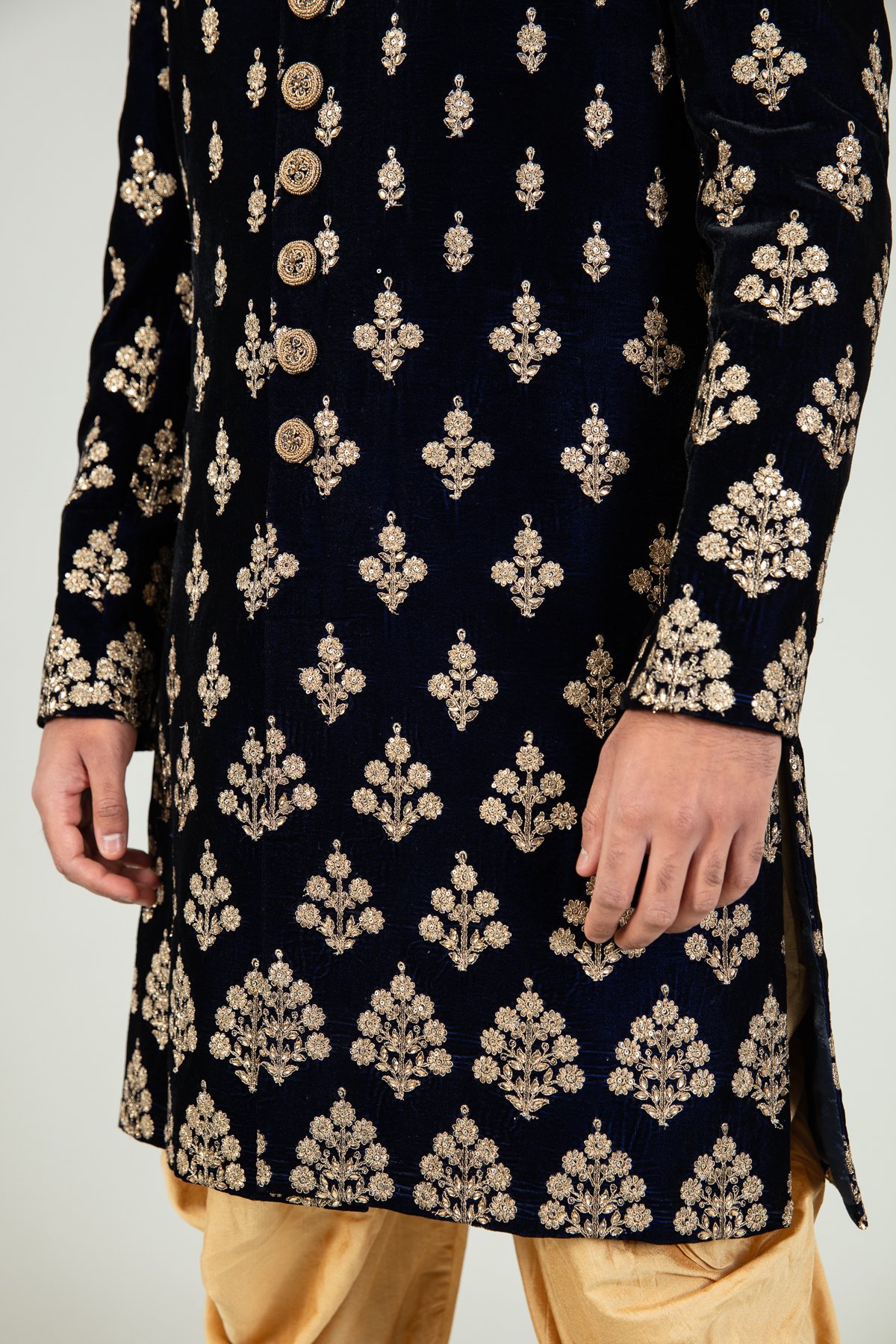 Men’s velvet sherwani with a tulip shalwar