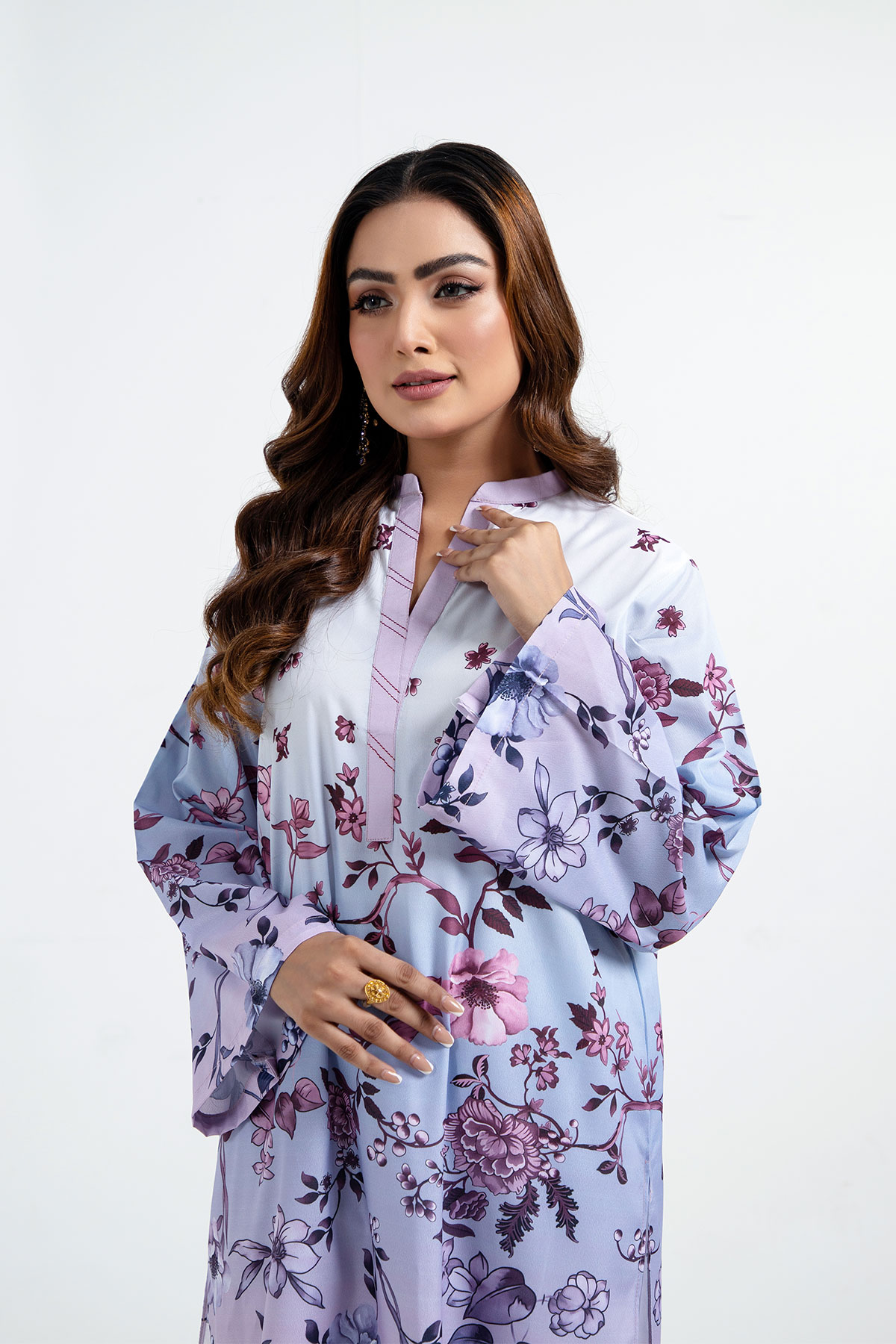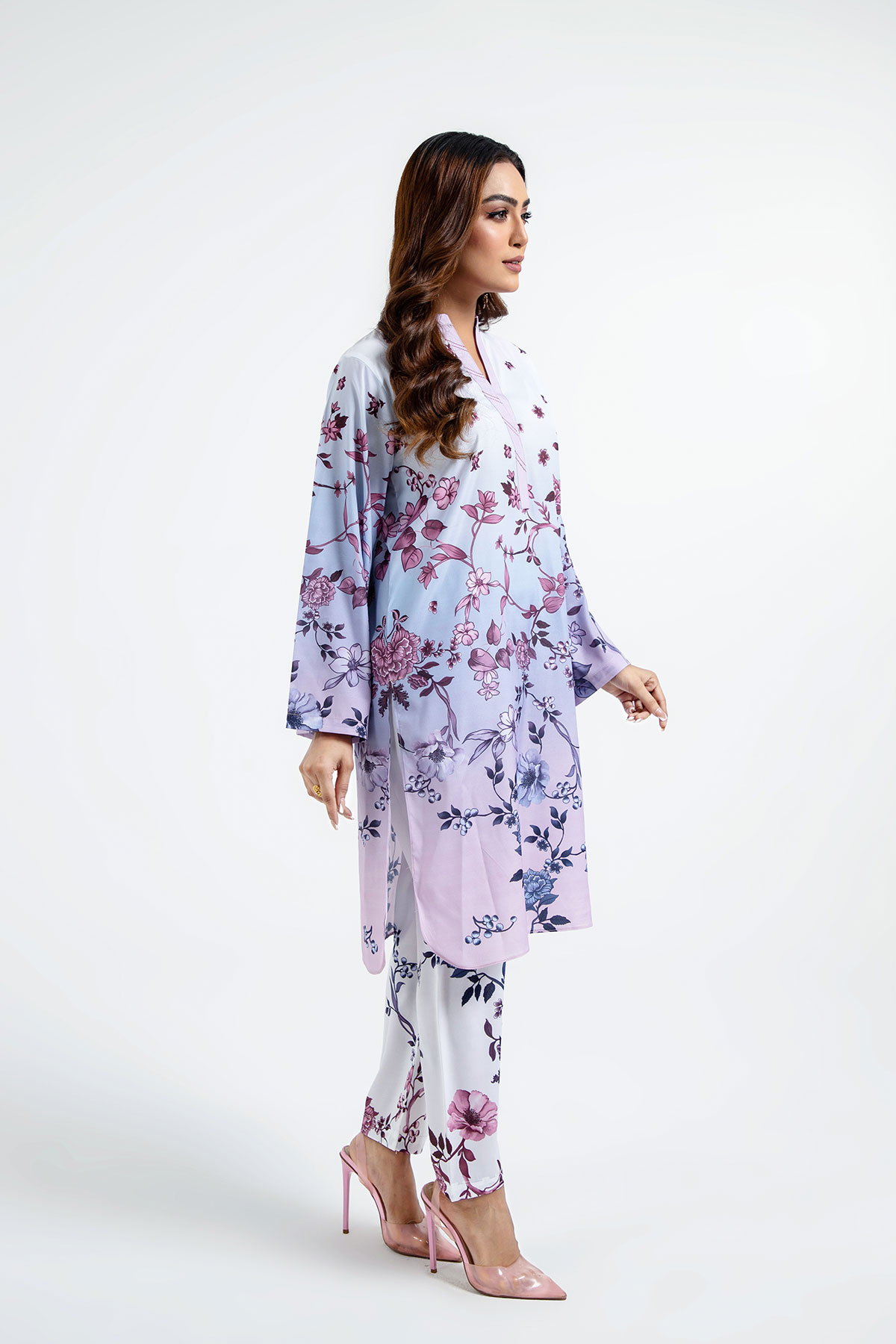 This beautiful 2-piece co-ord set is crafted from premium printed grip silk, offering a smooth, luxurious feel and an elegant drape. The top features a classic straight-cut design with a soft mandarin collar and delicate embroidery accents on the sleeves. The floral print cascades gracefully across the fabric, creating a timeless and sophisticated look. Paired with wide-leg printed trousers, this set ensures both comfort and effortless style. The lightweight fabric enhances movement, making it perfect for day-to-evening wear. Perfect for festive gatherings, casual elegance, and special occasions.