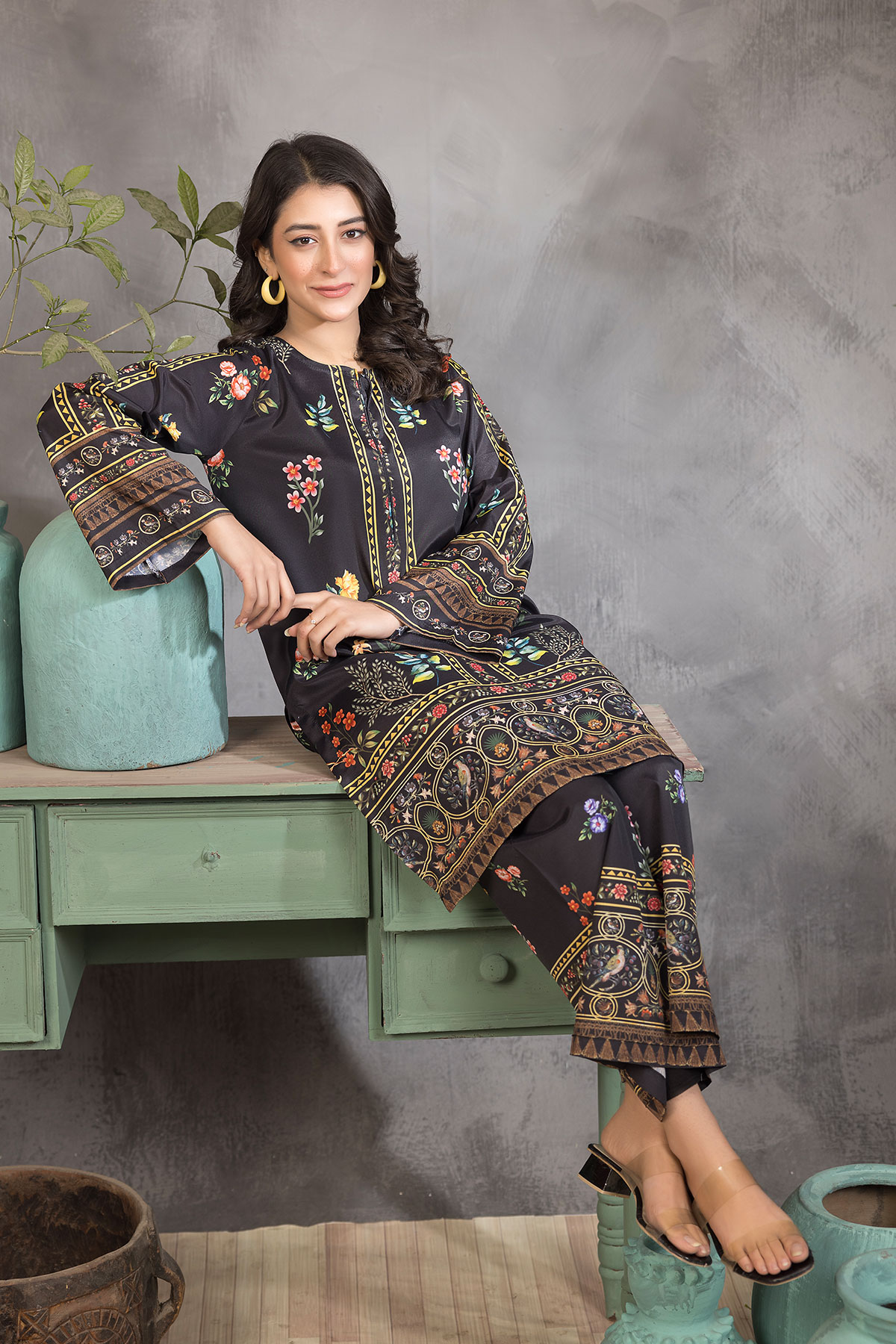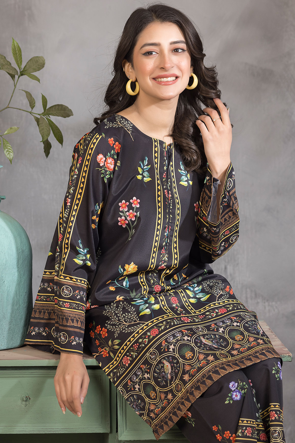 This beautiful 2-piece co-ord set is crafted from premium printed grip silk, offering a smooth, luxurious feel and an elegant drape. The top features a classic straight-cut design with a soft mandarin collar and delicate embroidery accents on the sleeves. The floral print cascades gracefully across the fabric, creating a timeless and sophisticated look. Paired with wide-leg printed trousers, this set ensures both comfort and effortless style. The lightweight fabric enhances movement, making it perfect for day-to-evening wear. Perfect for festive gatherings, casual elegance, and special occasions.
