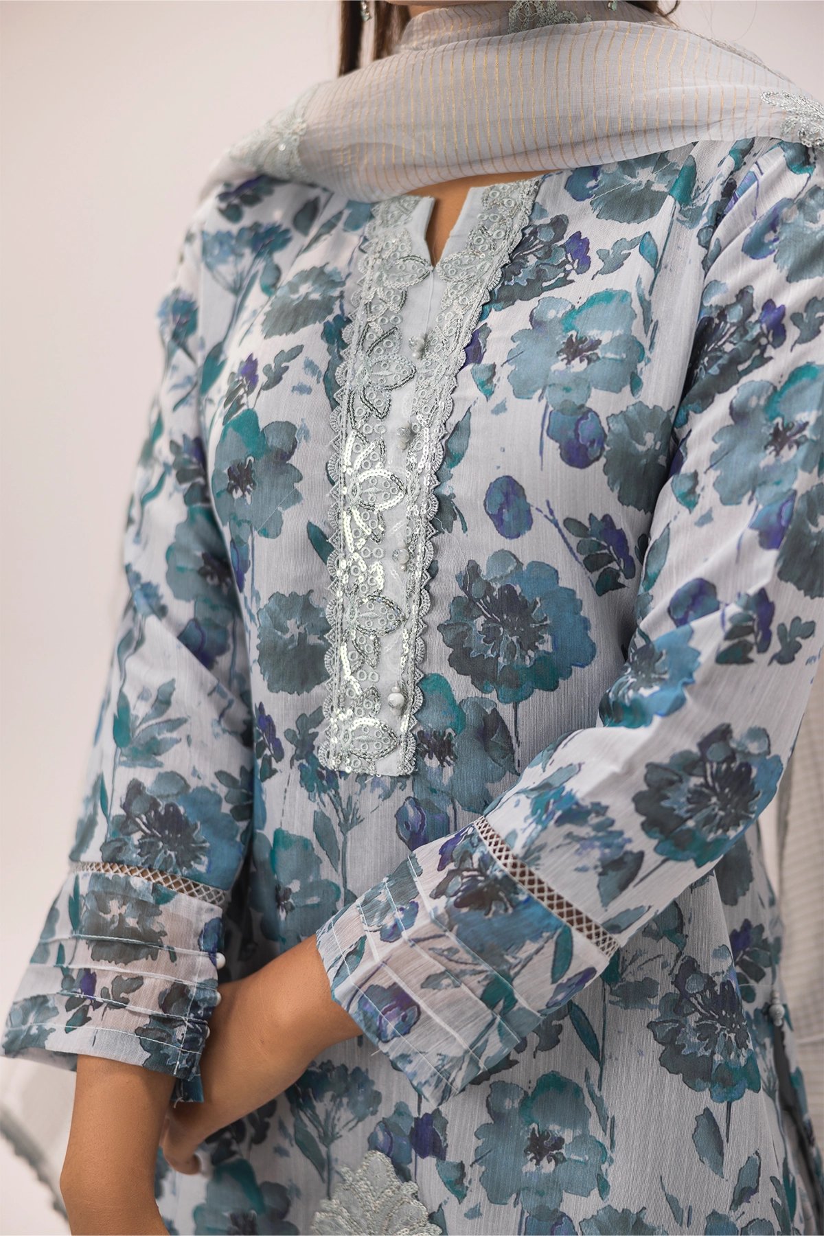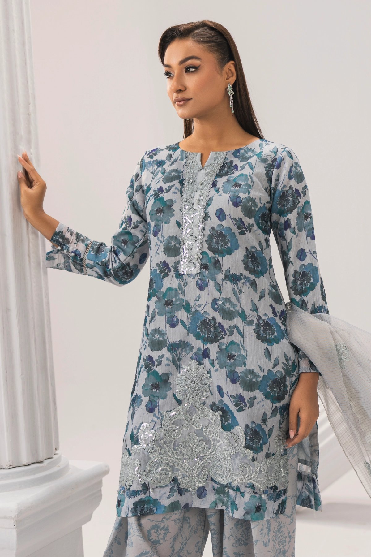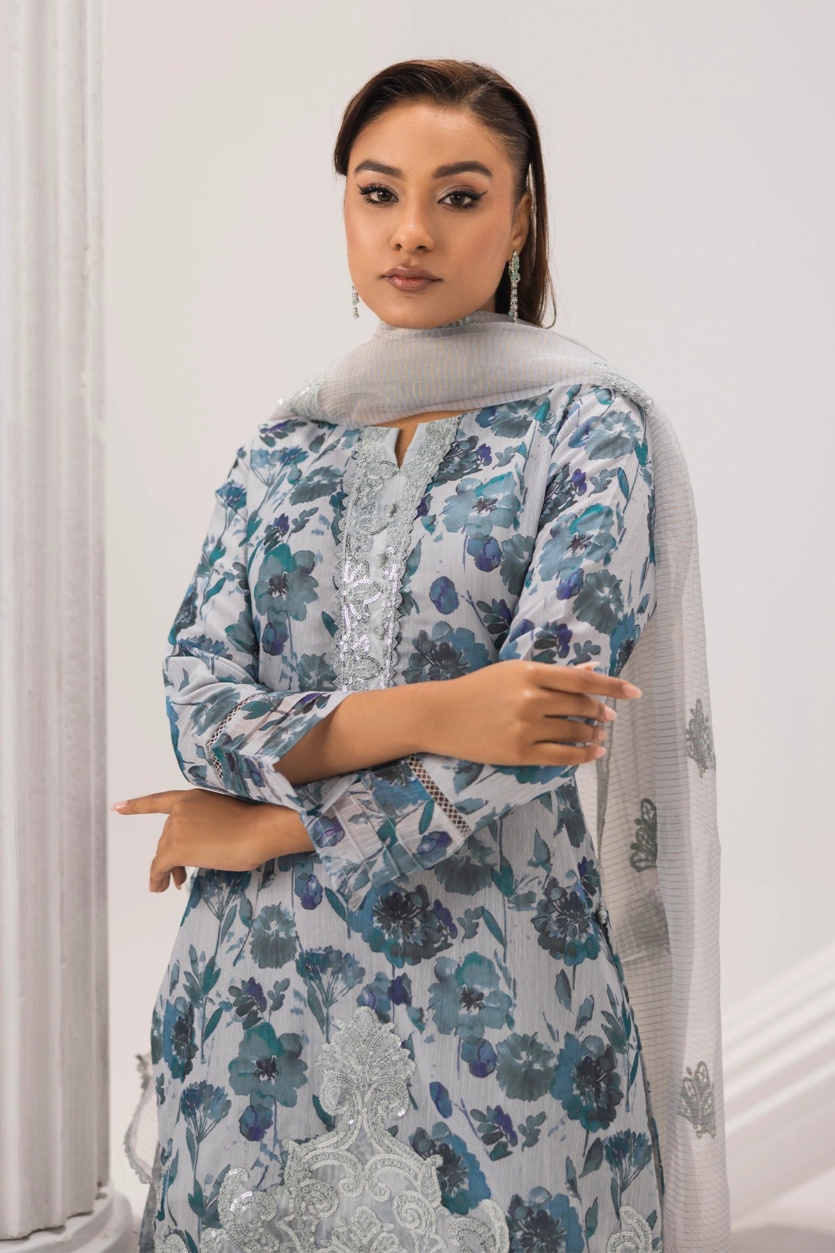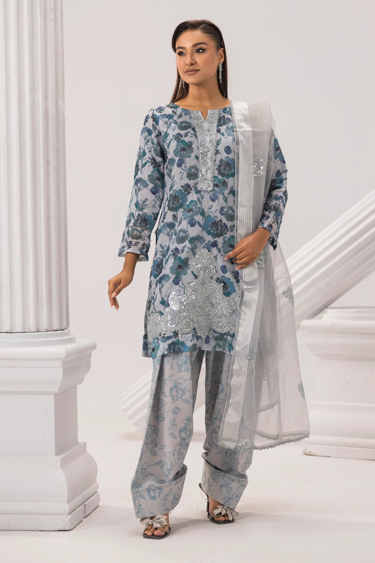 This beautiful 3-piece suit is made from soft monar fabric, featuring a straight kameez with elegant embroidery for a stylish yet traditional look. It comes with a matching farshi shalwar, adding a graceful and classic touch to the outfit. The set is completed with a lightweight organza dupatta, decorated with delicate embroidery to enhance the overall look. Perfect for festive occasions and Eid wear.