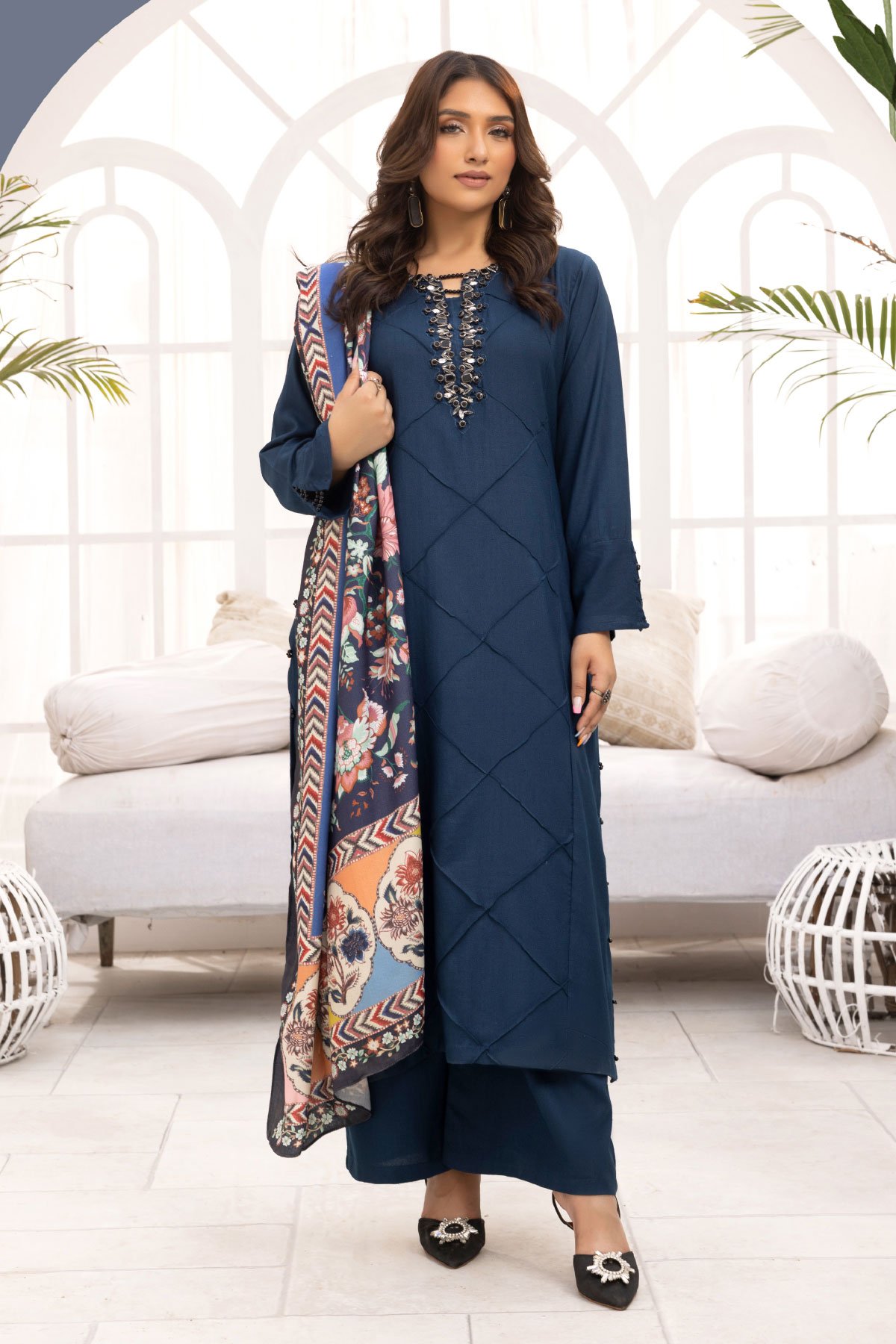 Ivana 3 piece luxe embroidered chikan kari Eid suit