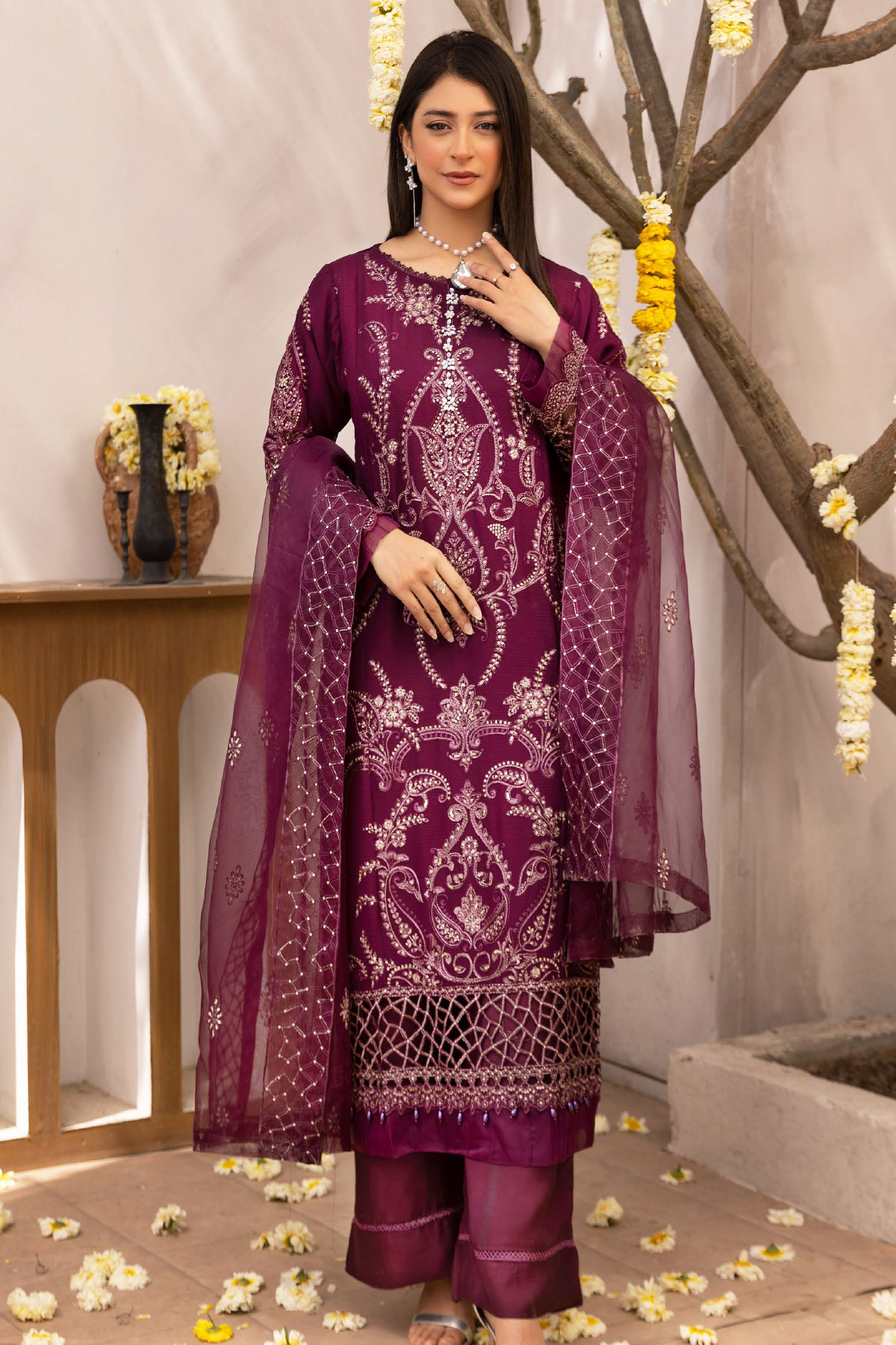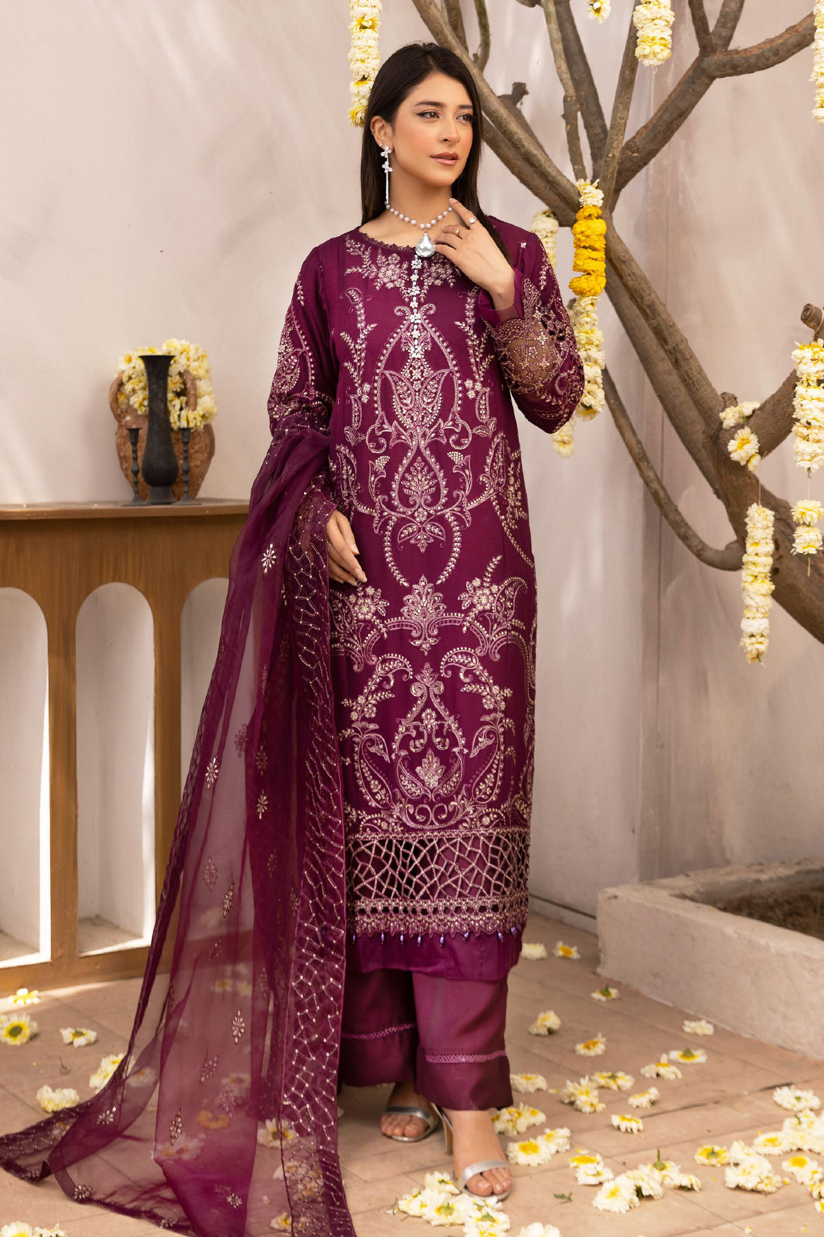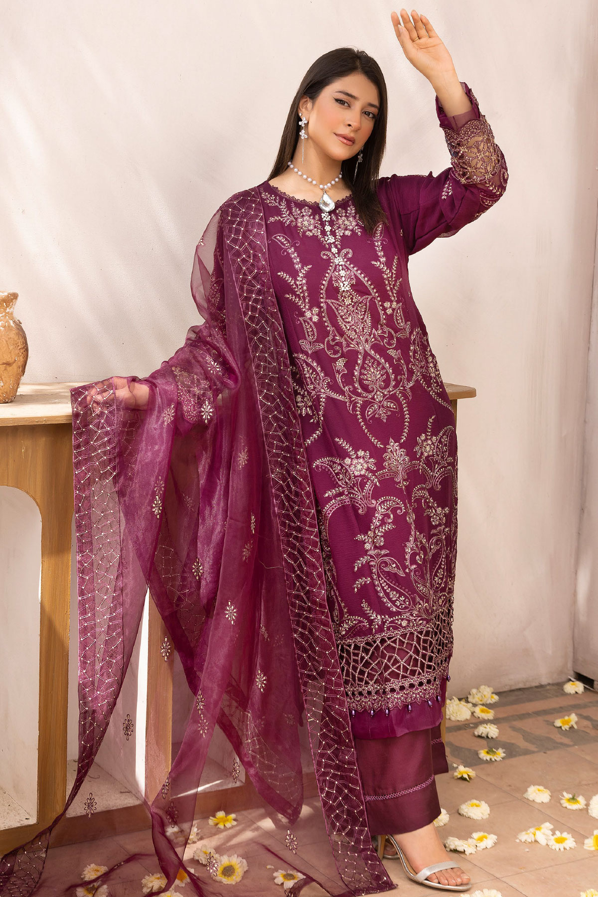 Nazish chiffon lux collection blessed 3 piece embroidered suit