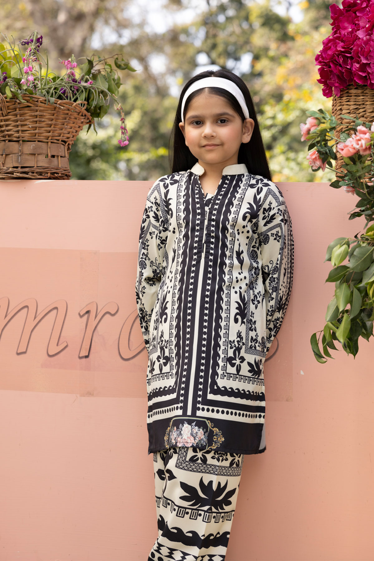 This beautiful 2-piece kids co-ord set is designed for effortless elegance and comfort. The short shirt, crafted from soft polyester, features a captivating printed design that adds a modern and stylish touch. Paired with matching printed polyester plazo trousers, this ensemble offers a fluid and relaxed silhouette, perfect for both casual and semi-formal occasions. A versatile addition to your wardrobe, ideal for all-day wear with a chic and contemporary appeal. Perfect mother and daughter collection for Eid, making it an excellent choice for festive gatherings and celebrations.