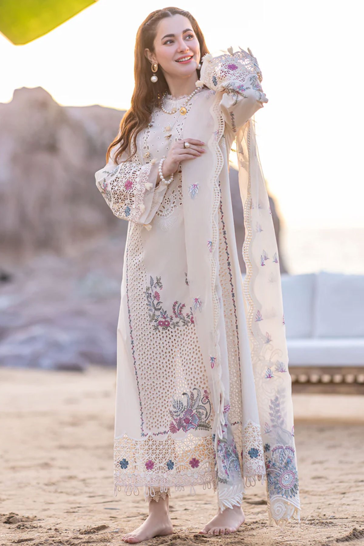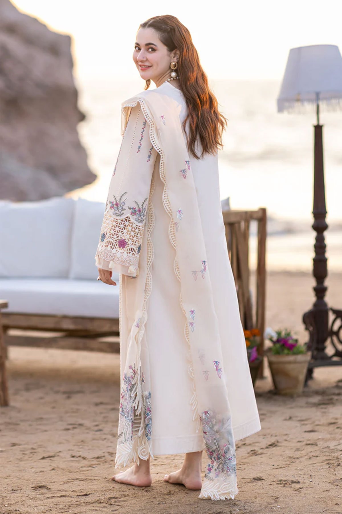 This beautiful 3 piece Qalamkar inspired suit features a straight chikankari embroidered shirt with full length embroidered sleeves. It comes with straight leg trousers and the look is finished with an embroidered organza dupatta. Note: Above catalogue picture is for design reference only, embroidery can vary.