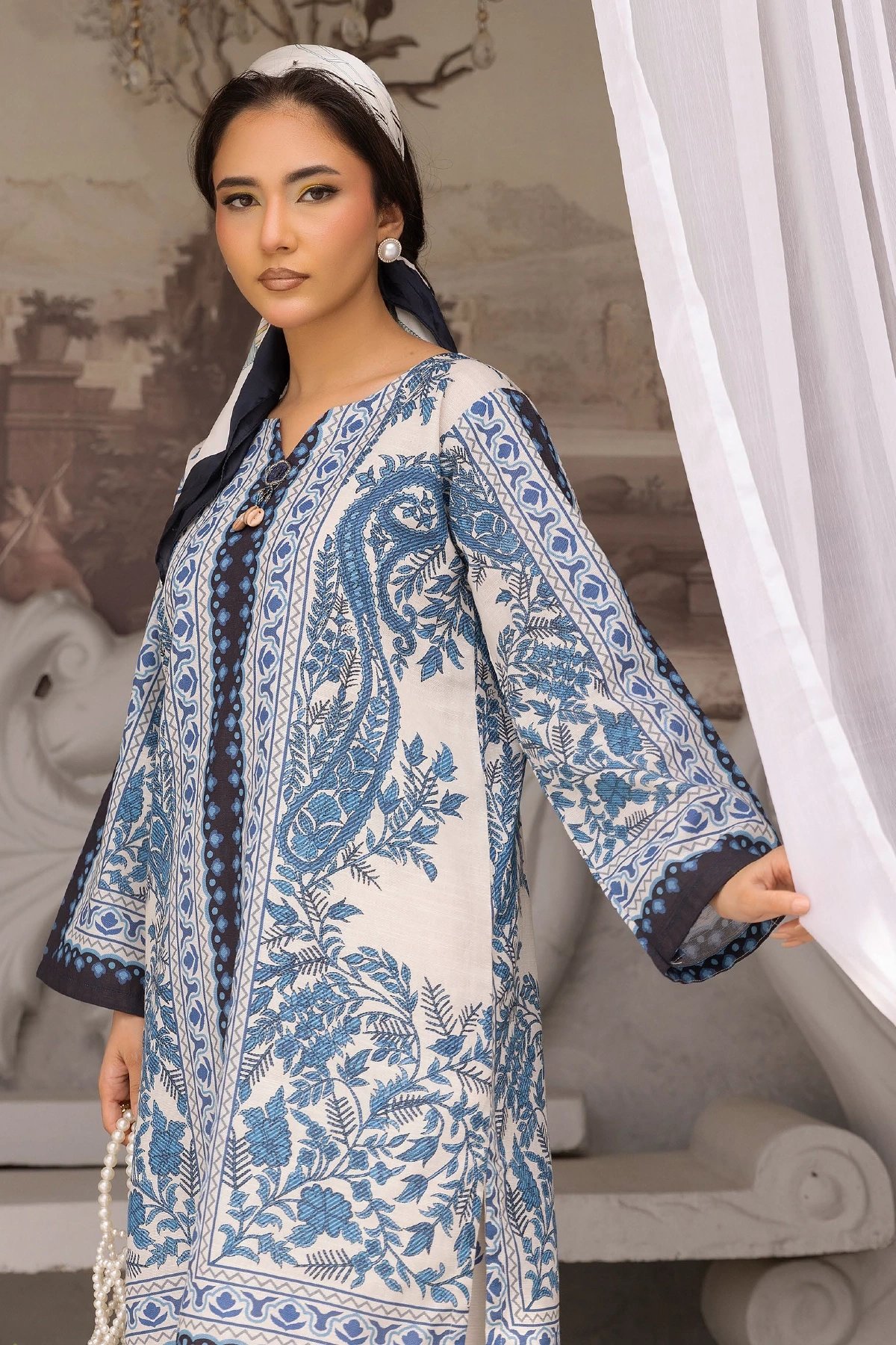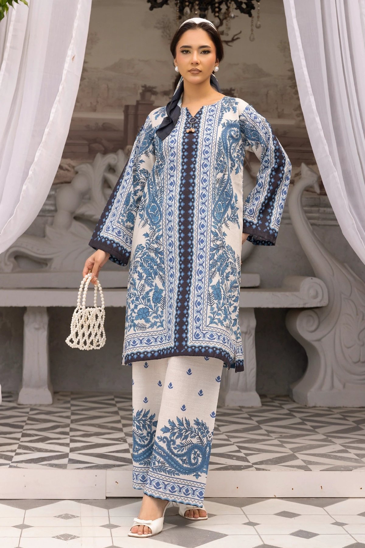 This beautiful 2-piece co-ord set is designed for effortless elegance and comfort. A straight shirt crafted from khaddar fabric, features a captivating printed design that adds a modern and stylish touch. Paired with matching printed plazo trousers, this ensemble offers a fluid and relaxed silhouette, perfect for both casual and semi-formal occasions. A versatile addition to your wardrobe, ideal for all-day wear with a chic and contemporary appeal.