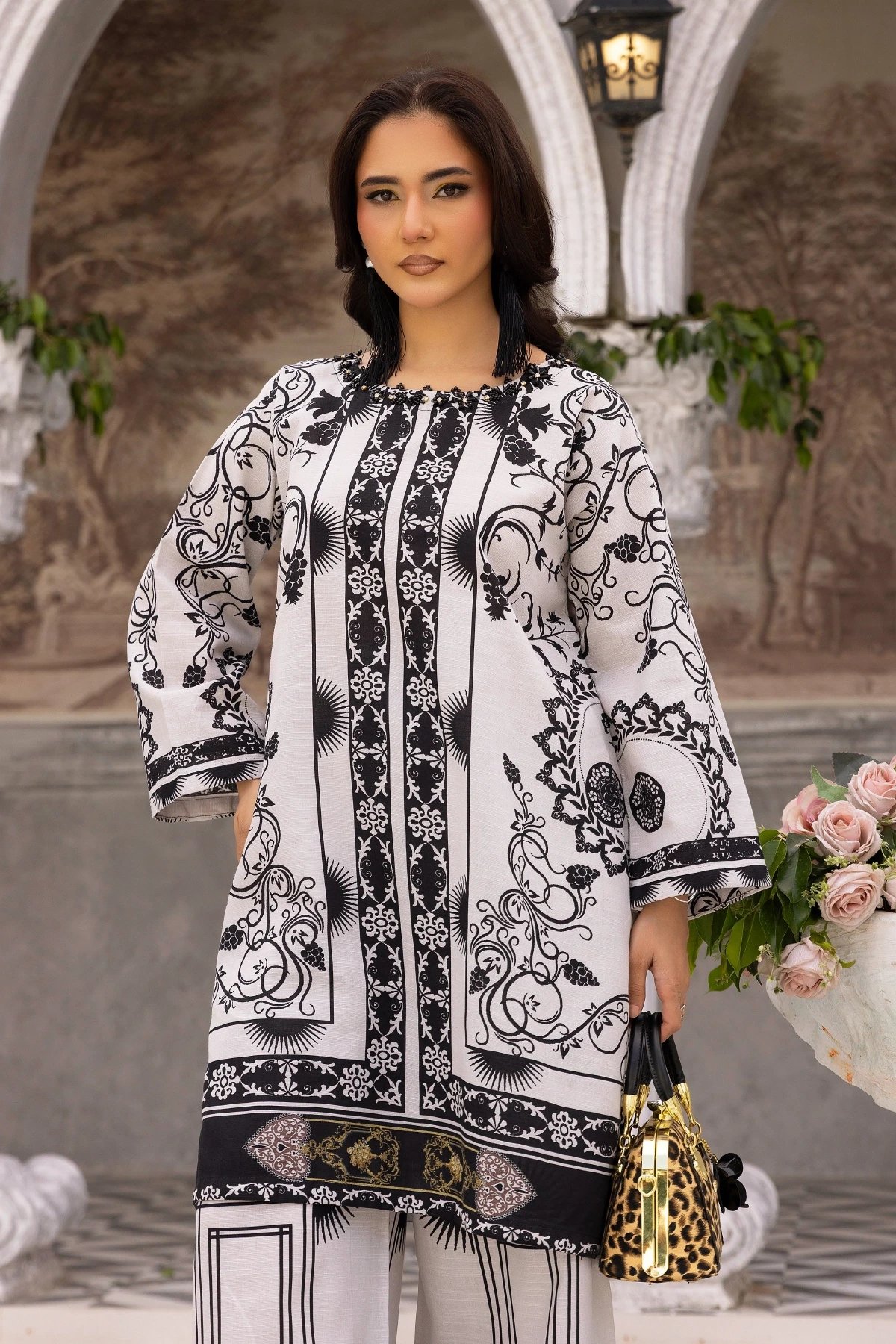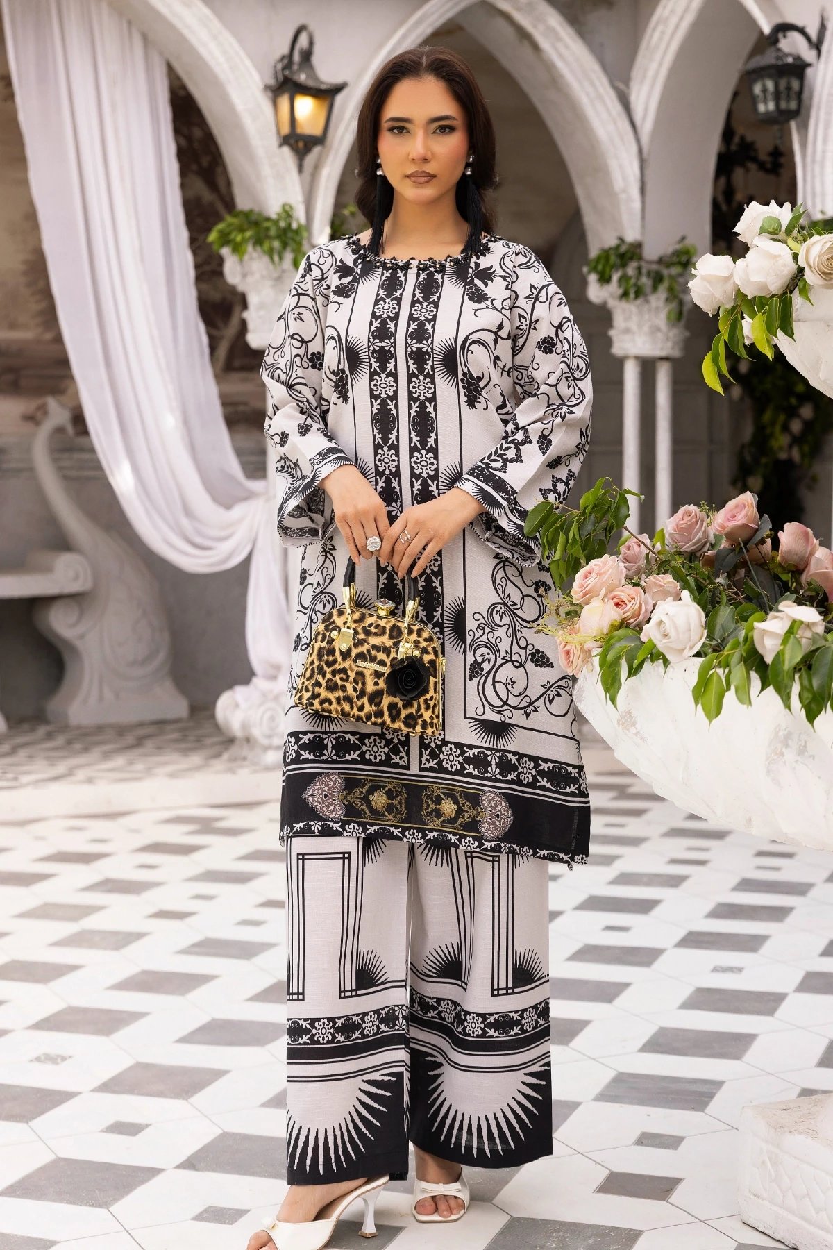 This beautiful 2-piece co-ord set is designed for effortless elegance and comfort. A straight shirt crafted from khaddar fabric, features a captivating printed design that adds a modern and stylish touch. Paired with matching printed plazo trousers, this ensemble offers a fluid and relaxed silhouette, perfect for both casual and semi-formal occasions. A versatile addition to your wardrobe, ideal for all-day wear with a chic and contemporary appeal.