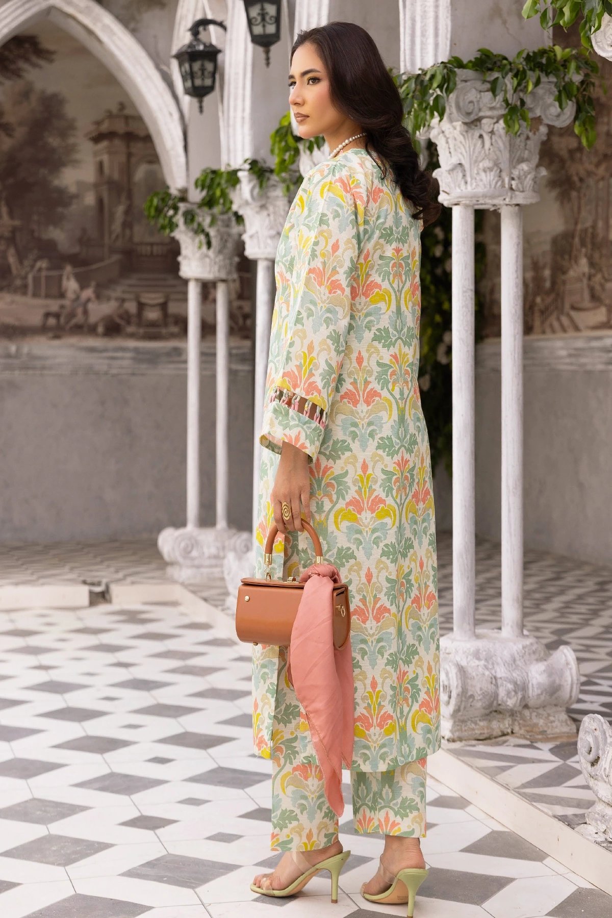 This beautiful 2-piece co-ord set is designed for effortless elegance and comfort. A straight shirt crafted from khaddar fabric, features a captivating printed design that adds a modern and stylish touch. Paired with matching printed plazo trousers, this ensemble offers a fluid and relaxed silhouette, perfect for both casual and semi-formal occasions. A versatile addition to your wardrobe, ideal for all-day wear with a chic and contemporary appeal.