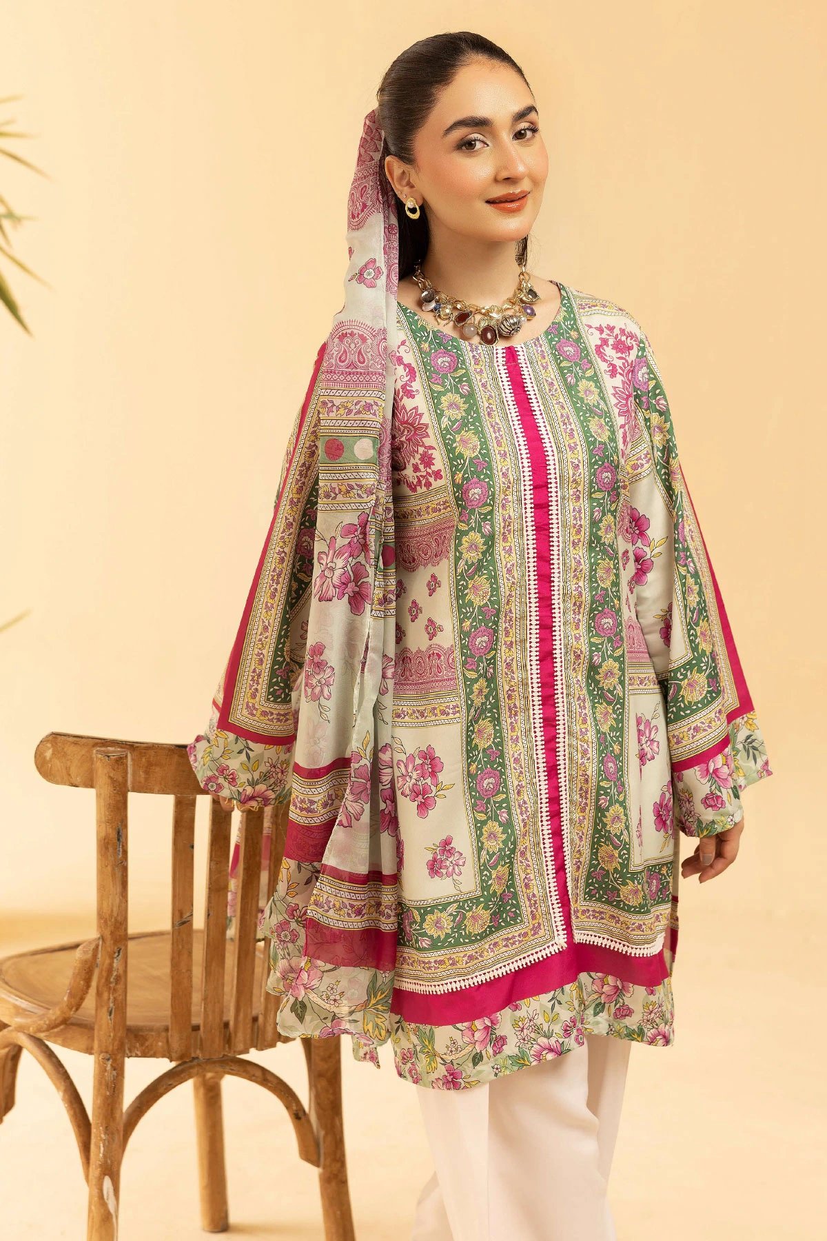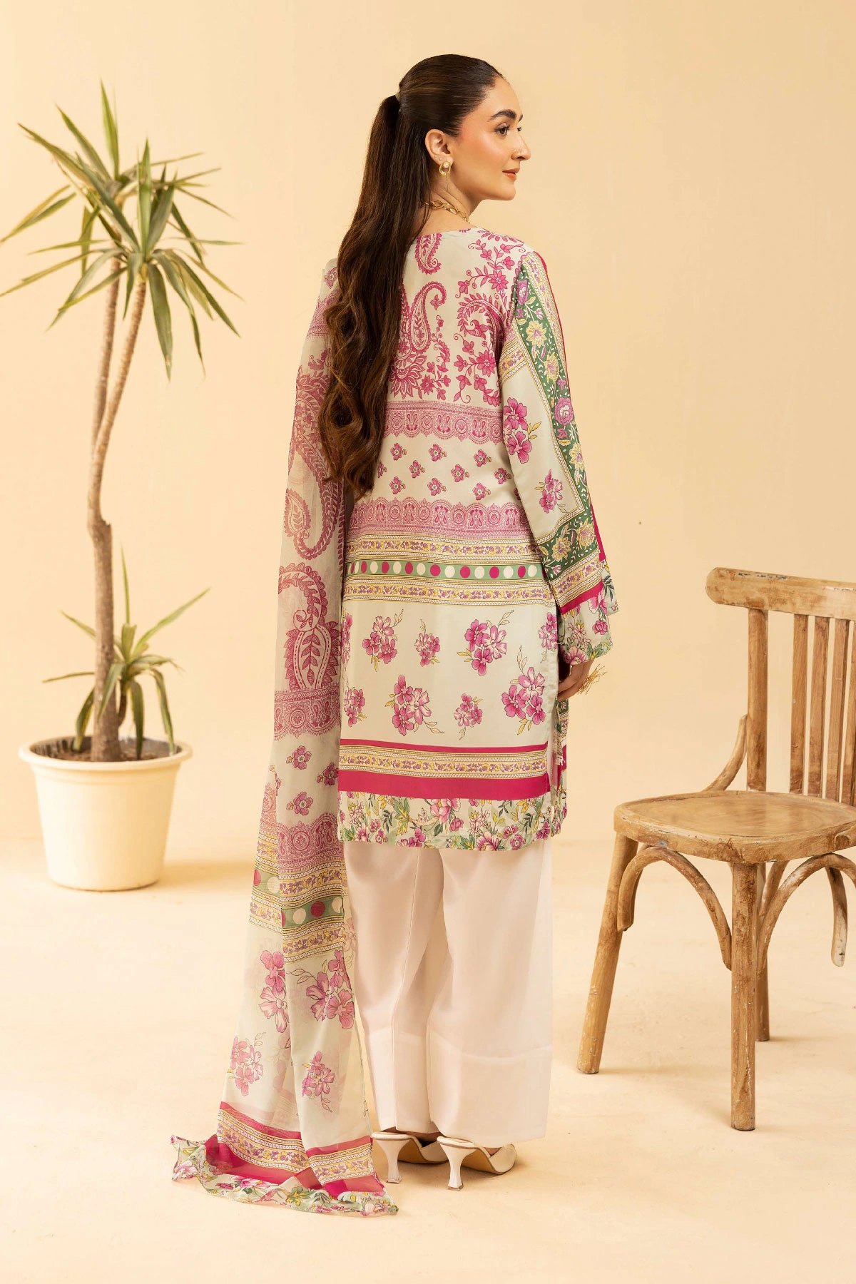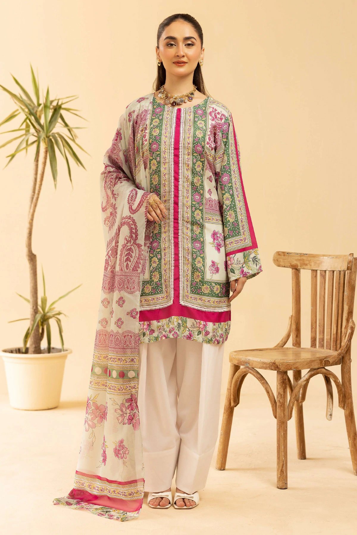 This beautiful Sania Maskatiya 4 piece lawn suit with plazo and farshi shalwar is a short straight fully digital printed shirt with full length sleeves. Paired with a farshi shalwar and plazo trousers. The look is finished with a plain chiffon printed dupatta. Note: (The farshi salwar is see through which is why we have also added a spare palazzo trousers you can style this with instead).