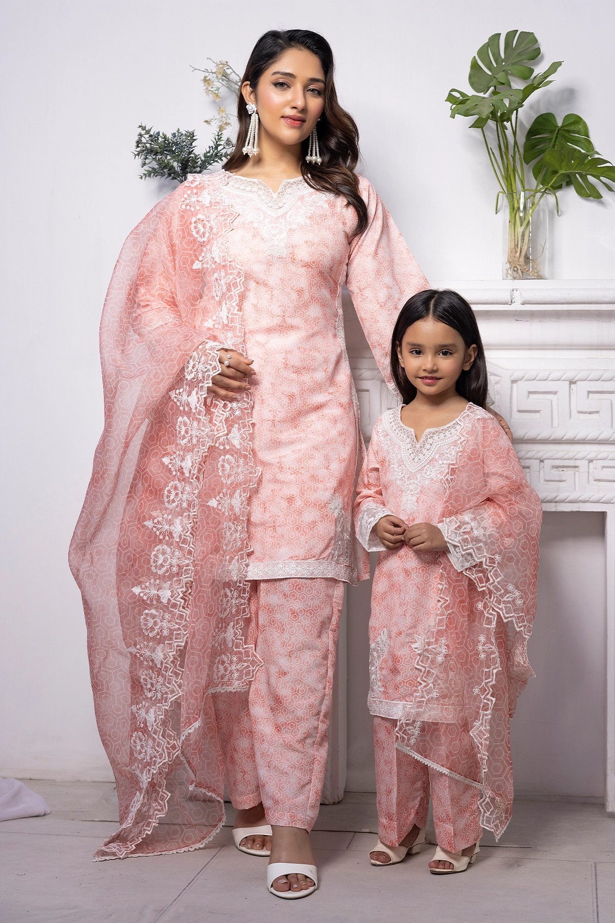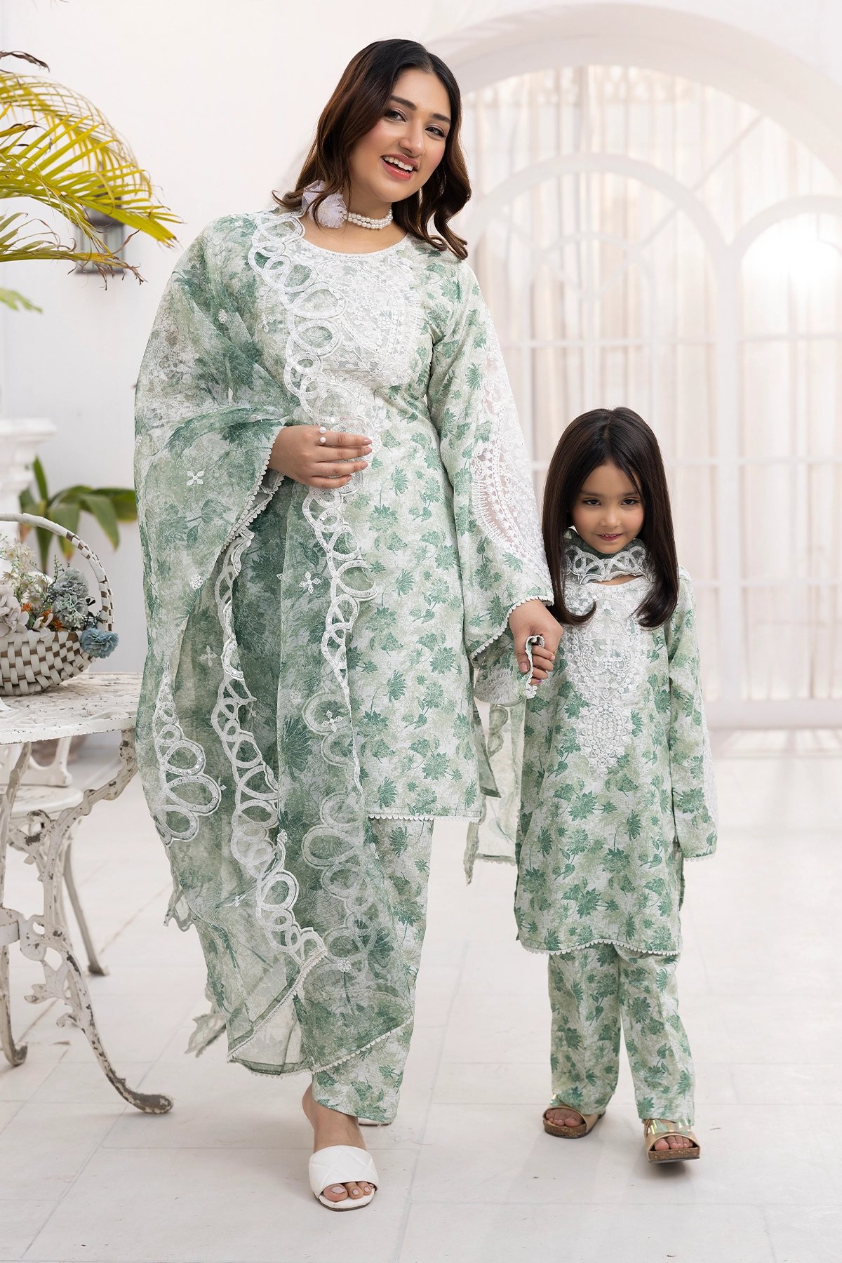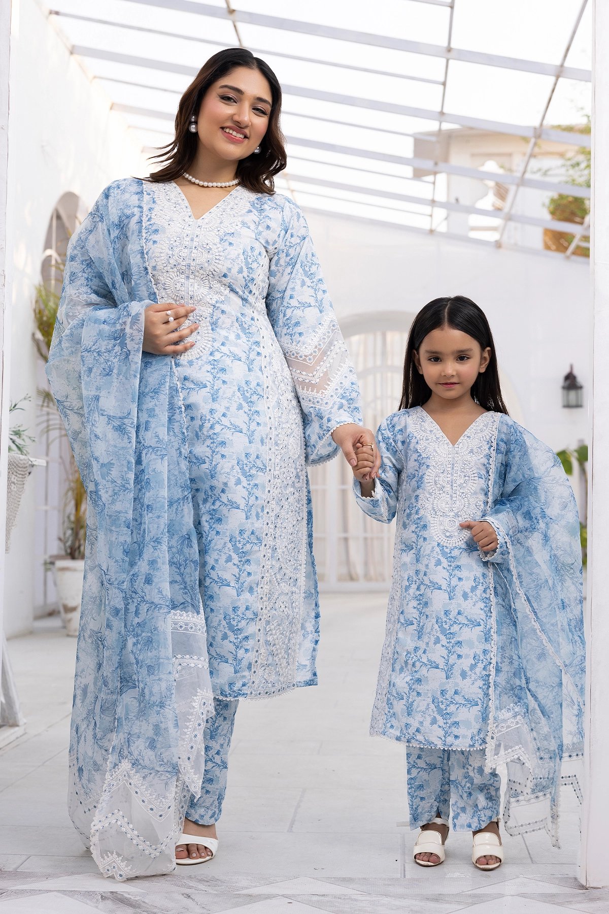 This beautiful Sawera Eid kids suit features a lawn kameez with intricate front embroidery, creating a timeless and elegant look. It is paired with lawn trousers, adding to its sophisticated appeal. The ensemble is completed with an organza dupatta, making it a perfect choice for Eid or any festive occasion. Please note colour may vary slightly from the images shown due to professional lighting, and the design can slightly vary too.