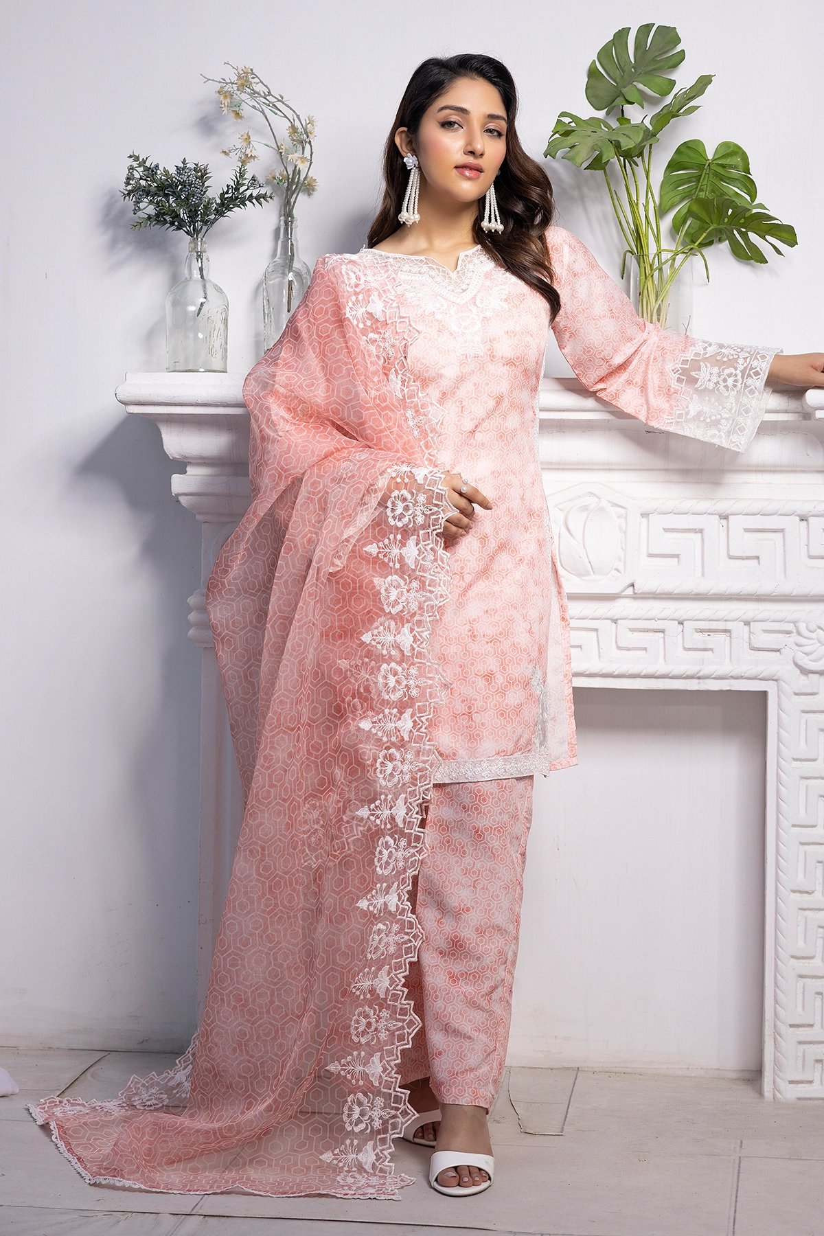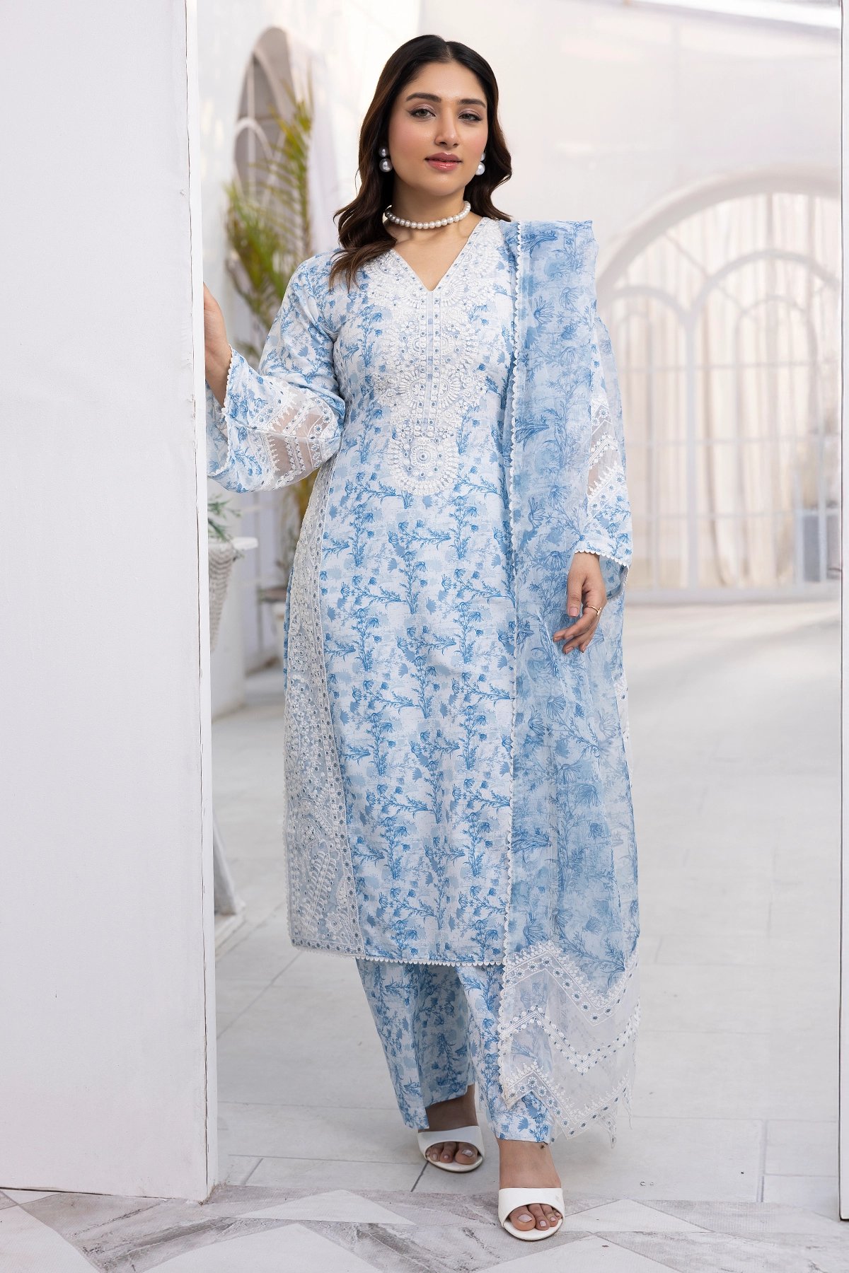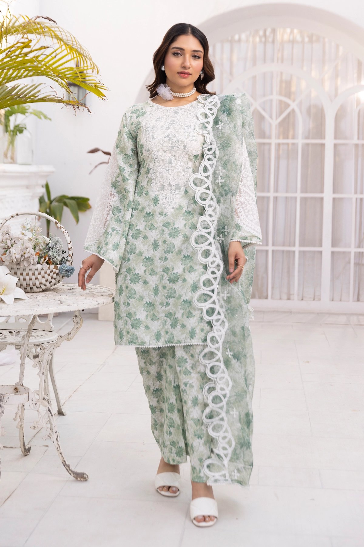 This beautiful Sawera Eid suit features a lawn kameez with intricate front embroidery, creating a timeless and elegant look. It is paired with lawn trousers, adding to its sophisticated appeal. The ensemble is completed with an organza dupatta, making it a perfect choice for Eid or any festive occasion. Please note colour may vary slightly from the images shown due to professional lighting, and the design can slightly vary too.
