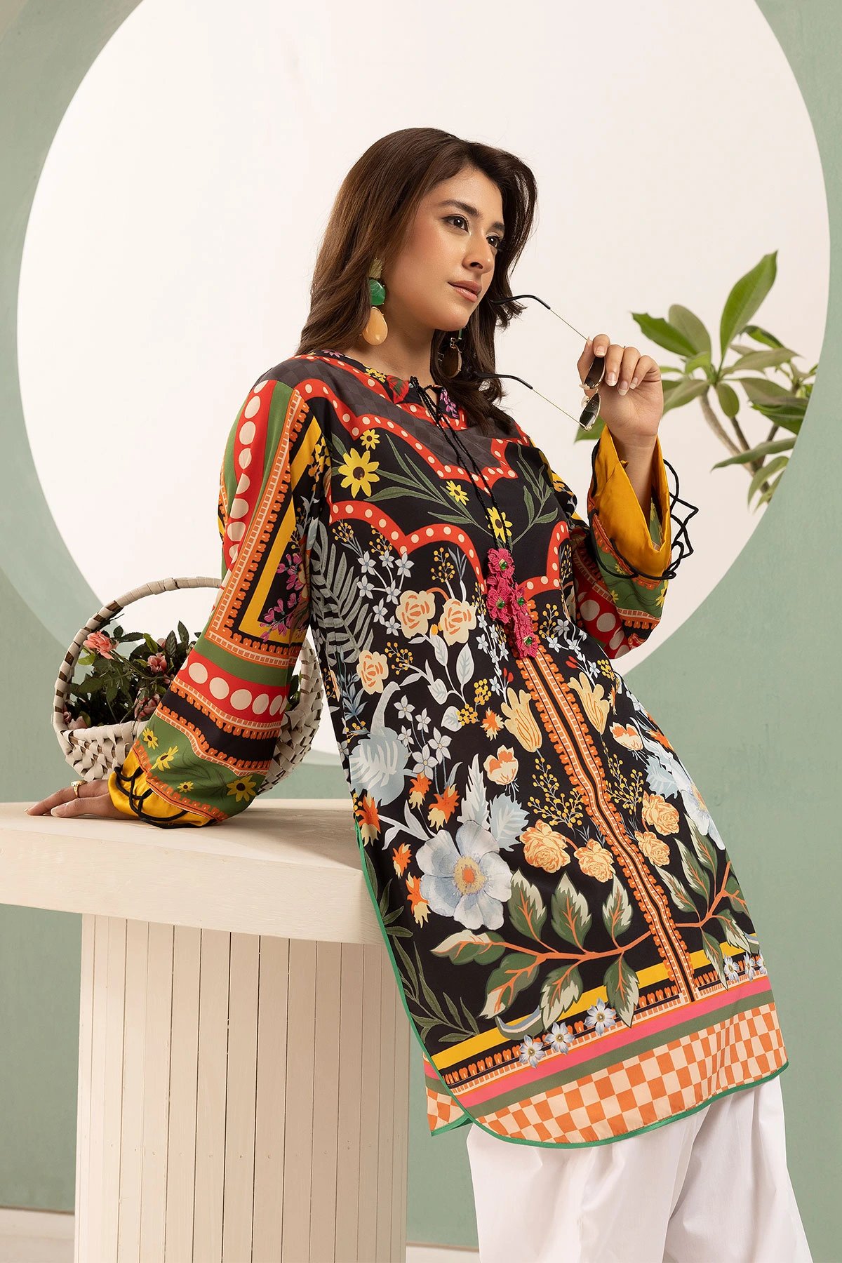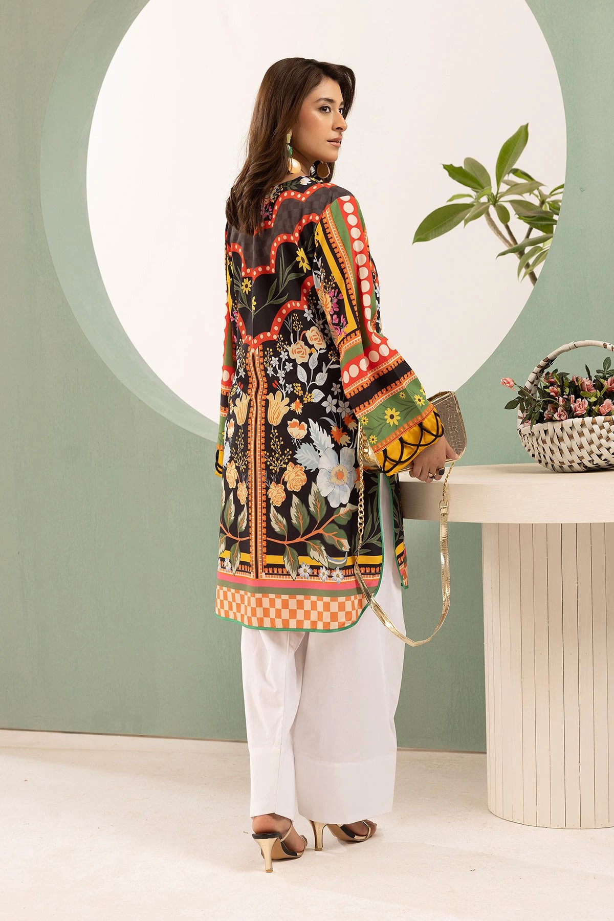 This beautiful 2-piece co-ord set is designed for effortless elegance and comfort. A straight shirt crafted from silk lawn fabric, features a captivating printed design that adds a modern and stylish touch. Paired with a contrasted cotton farshi shalwar, this ensemble offers a fluid and relaxed silhouette, perfect for both casual and semi-formal occasions. A versatile addition to your wardrobe, ideal for all-day wear with a chic and contemporary appeal. Note: The printed patterns on the borders may vary in each piece.