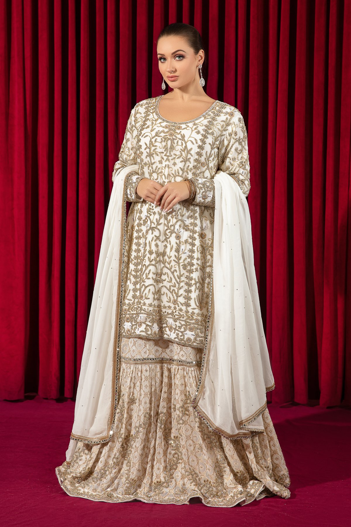 Shiffonz 3 piece embroidered long kameez lengha suit