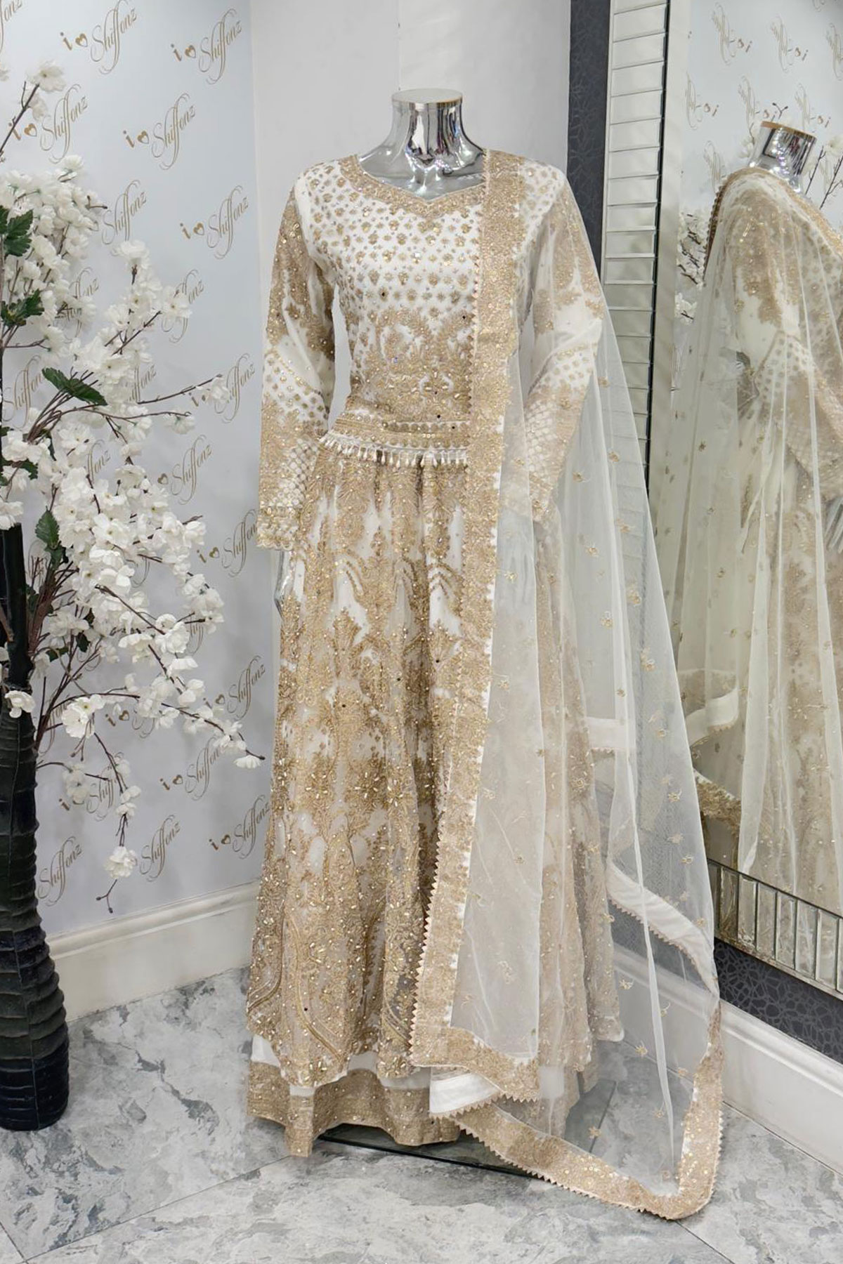 Shiffonz 3 piece net embroidered lengha choli
