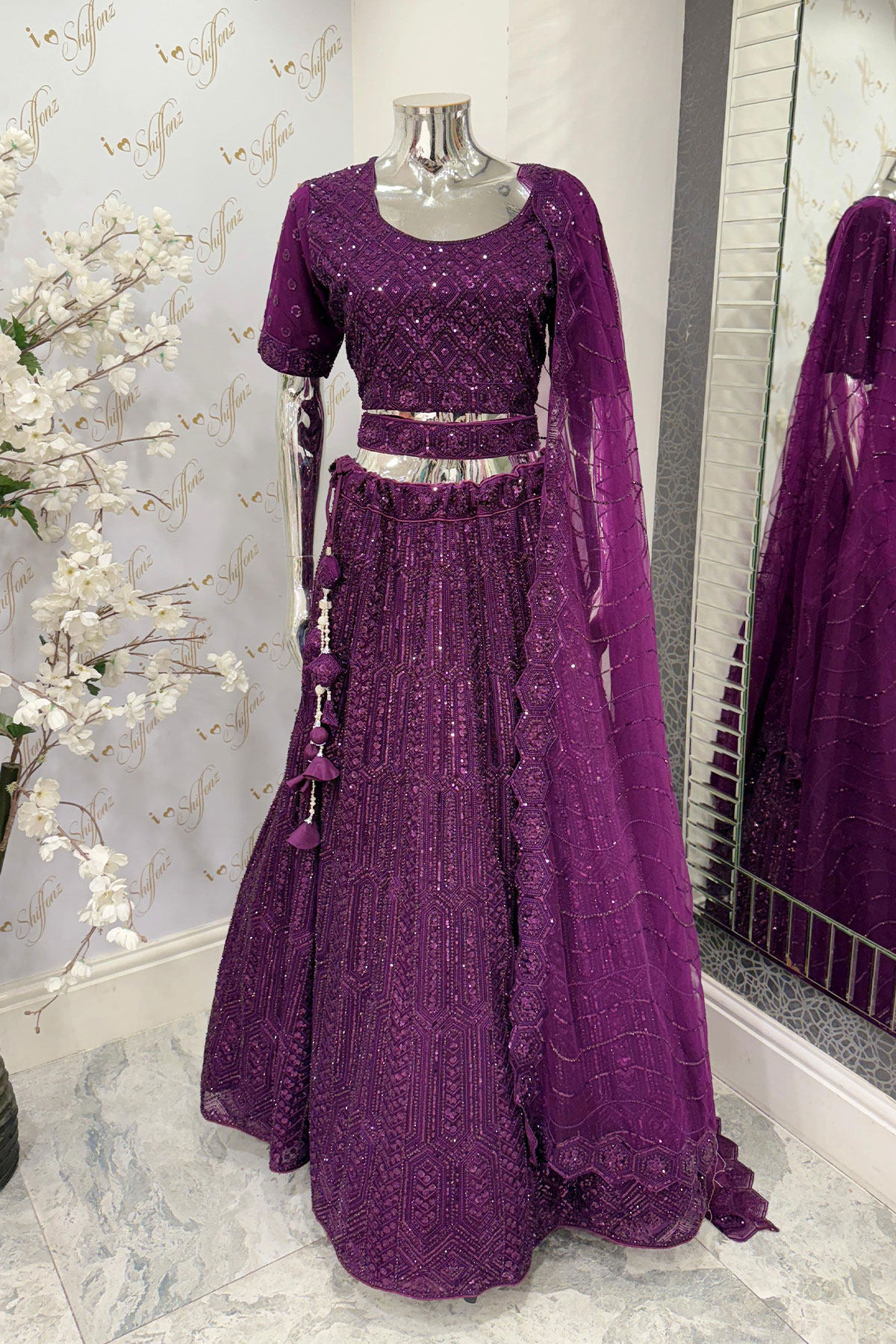 Shiffonz 3 piece net embroidered luxury lengha choli