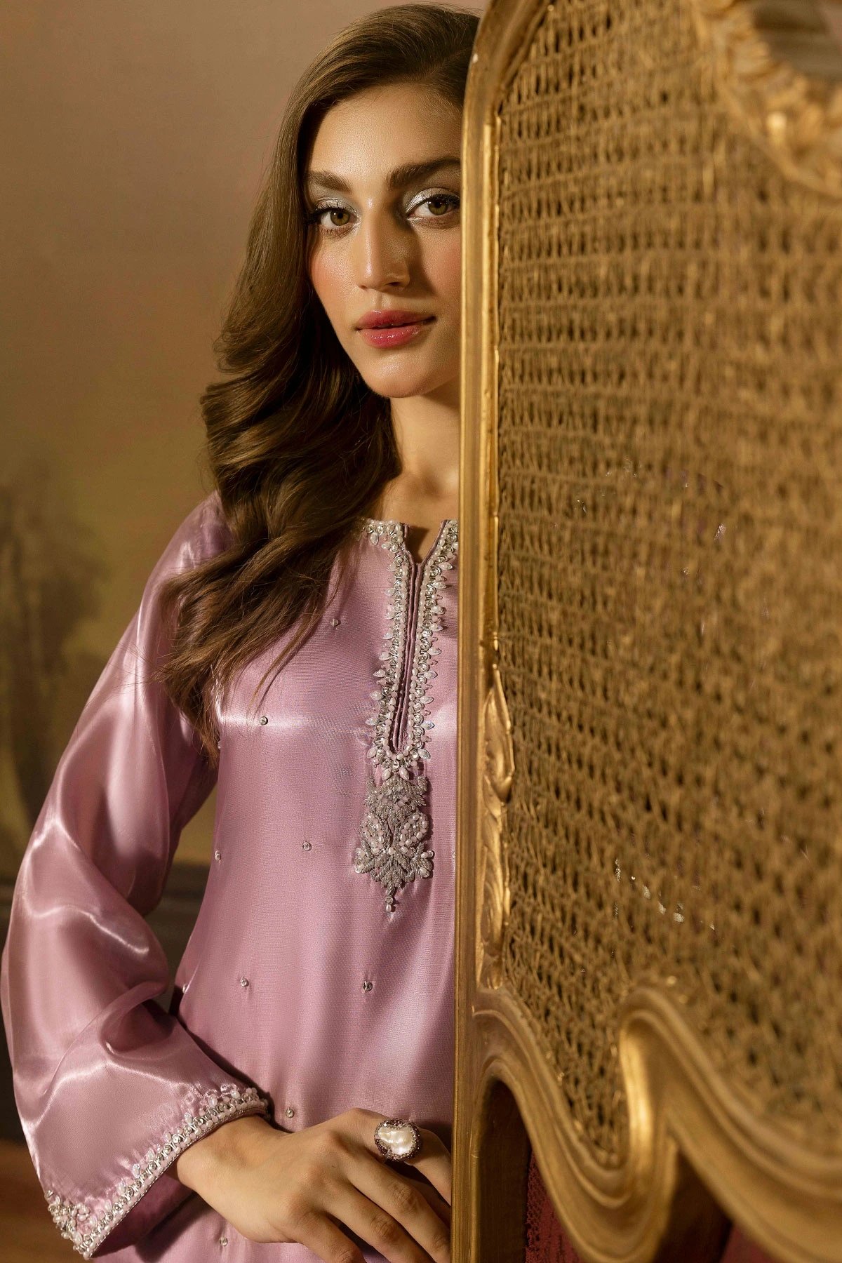 This beautiful 3 piece suit features a straight shirt with an embroidered front with scattered diamantés finished with full length sleeves with embroidered cuffs. Paired with a plain farshi shalwar and the look is finished with an embroidered organza dupatta. Perfect casual festive collection for this Eid.
