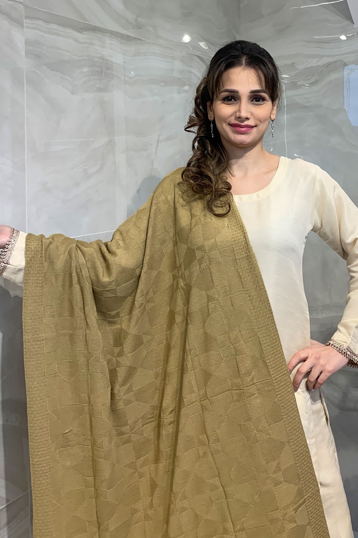 Beautiful casual wool shawl featuring patterns throughout. Perfect winter wear. Note: Patterns on shawls can vary.