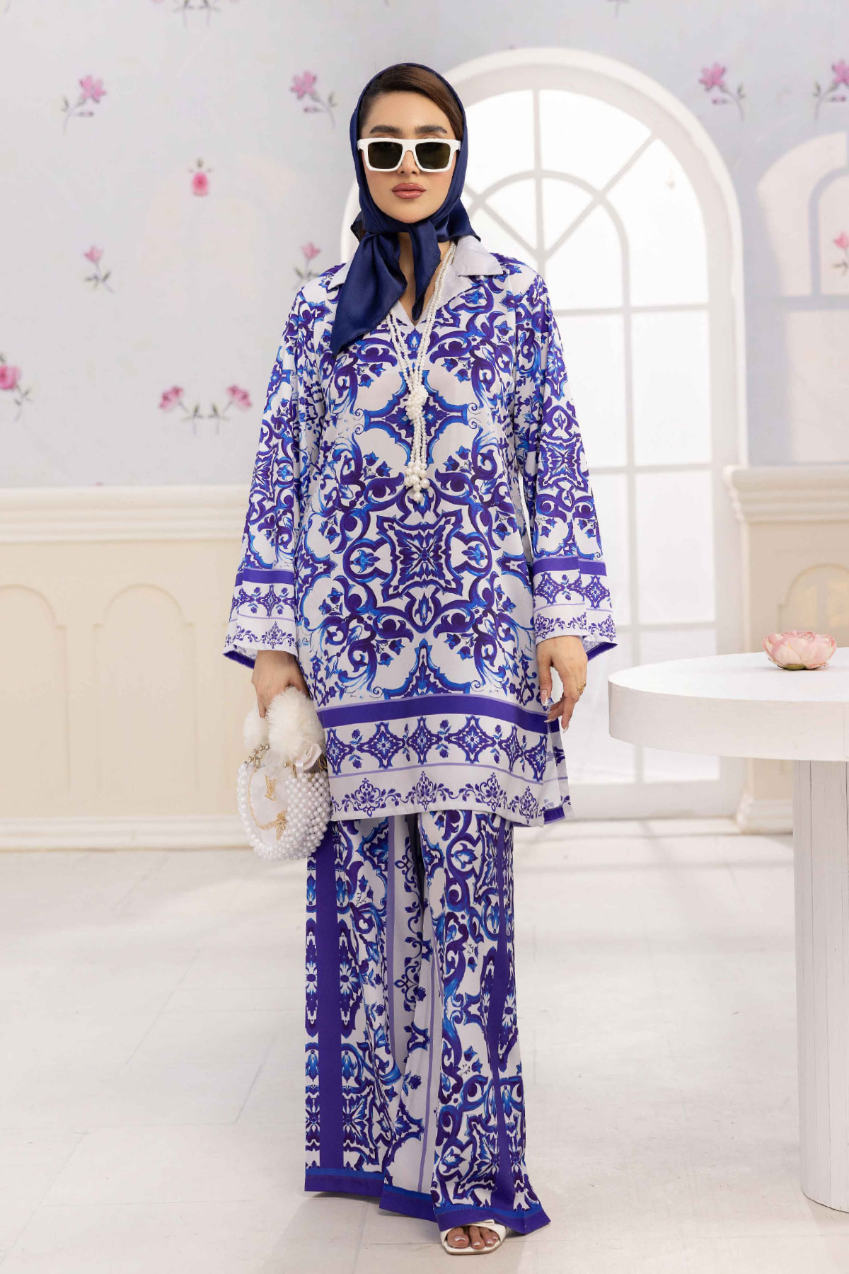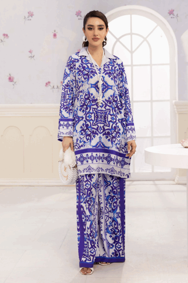 This beautiful 2-piece co-ord set is designed for effortless elegance and comfort. A straight shirt crafted from french silk crepe fabric, features a captivating printed design that adds a modern and stylish touch. Paired with matching printed plazo trousers, this ensemble offers a fluid and relaxed silhouette, perfect for both casual and semi-formal occasions. A versatile addition to your wardrobe, ideal for all-day wear with a chic and contemporary appeal.