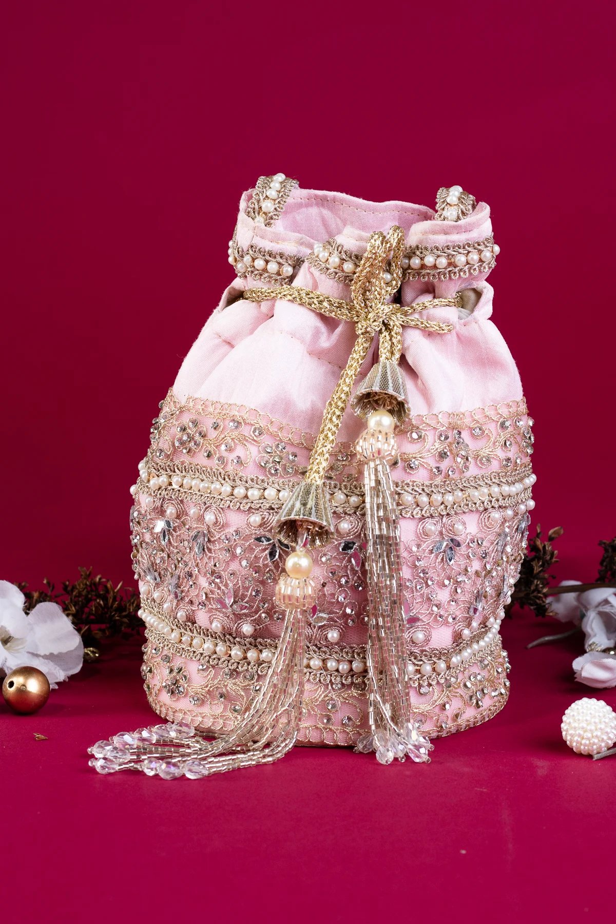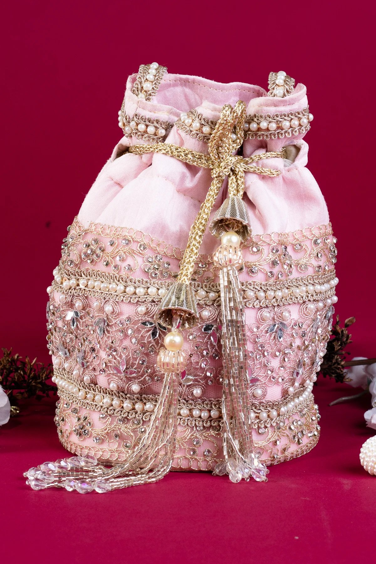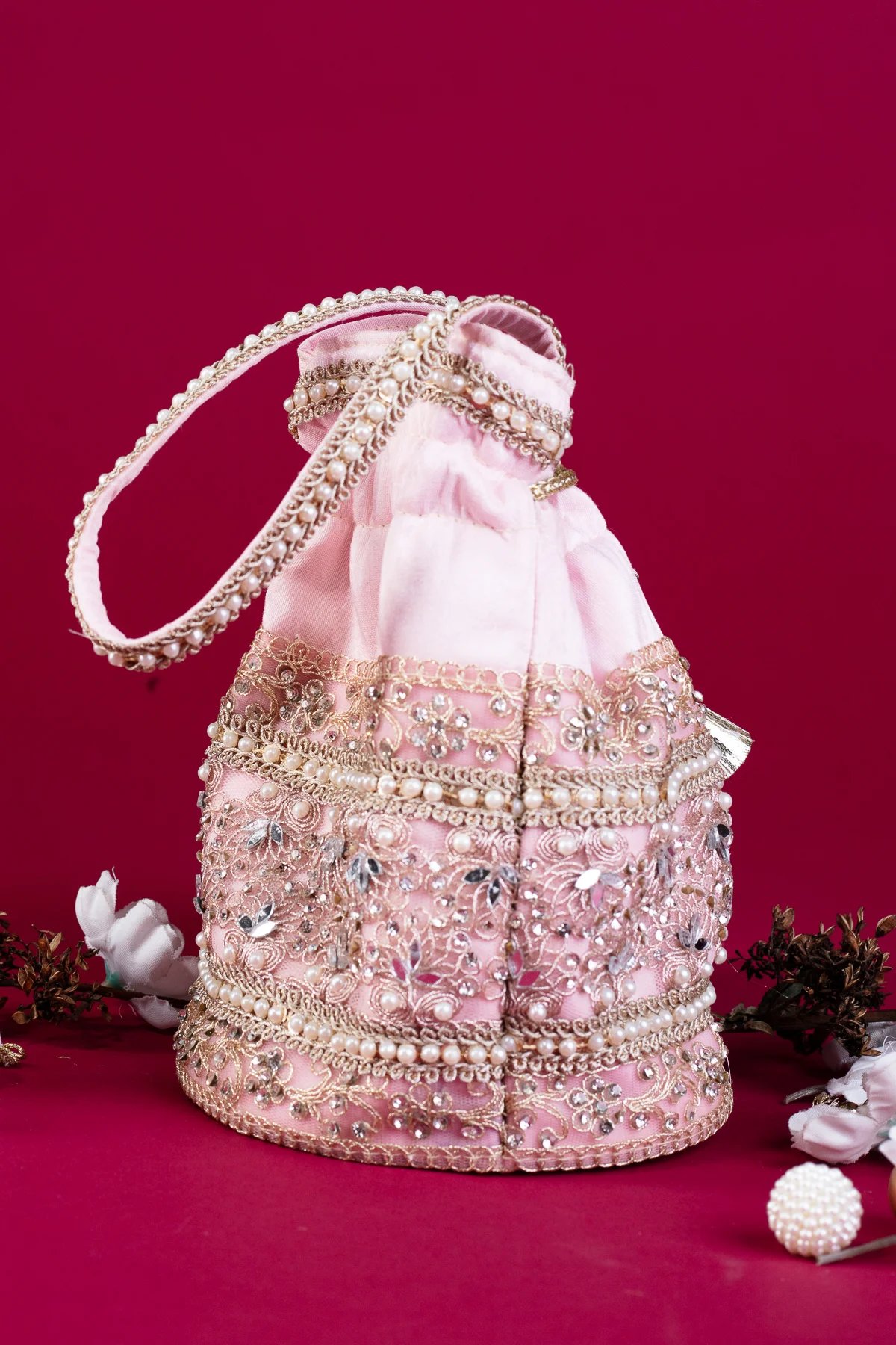 Shiffonz deluxe crepe pearl potli bag