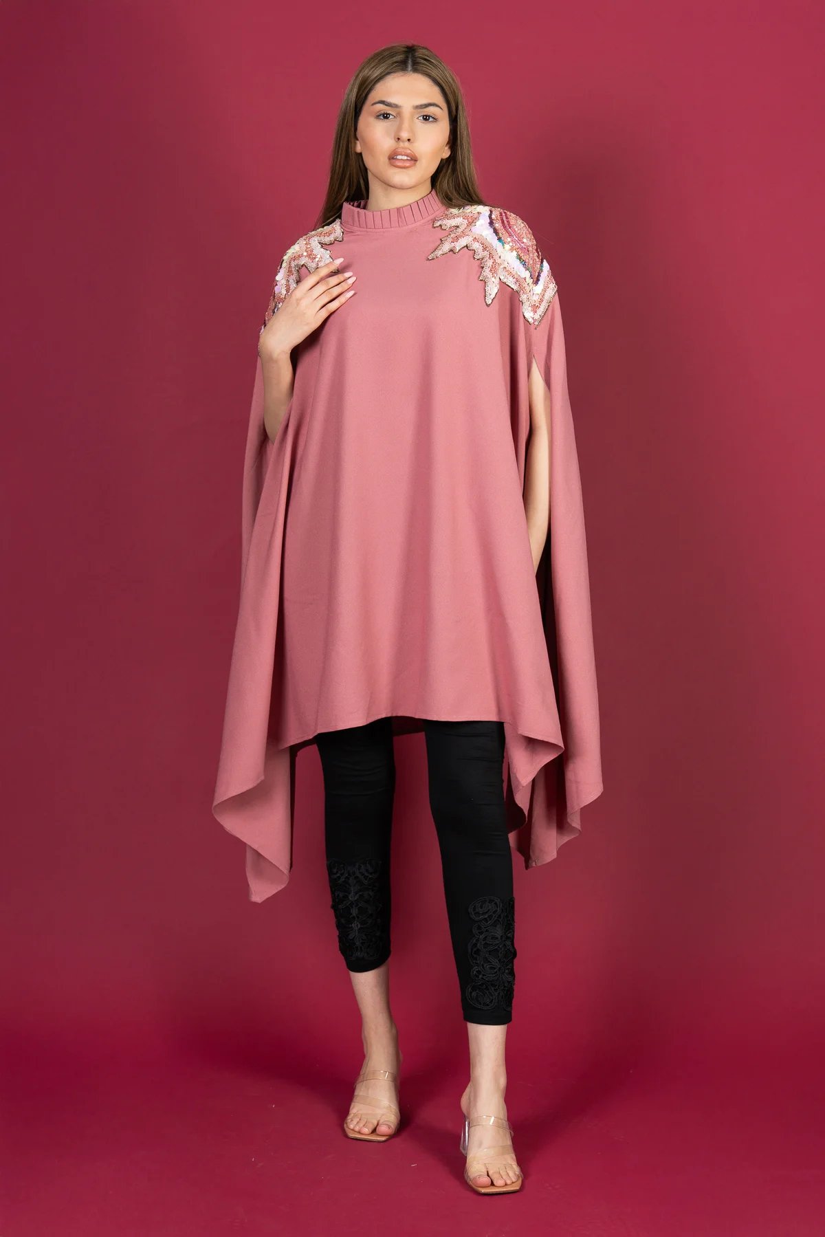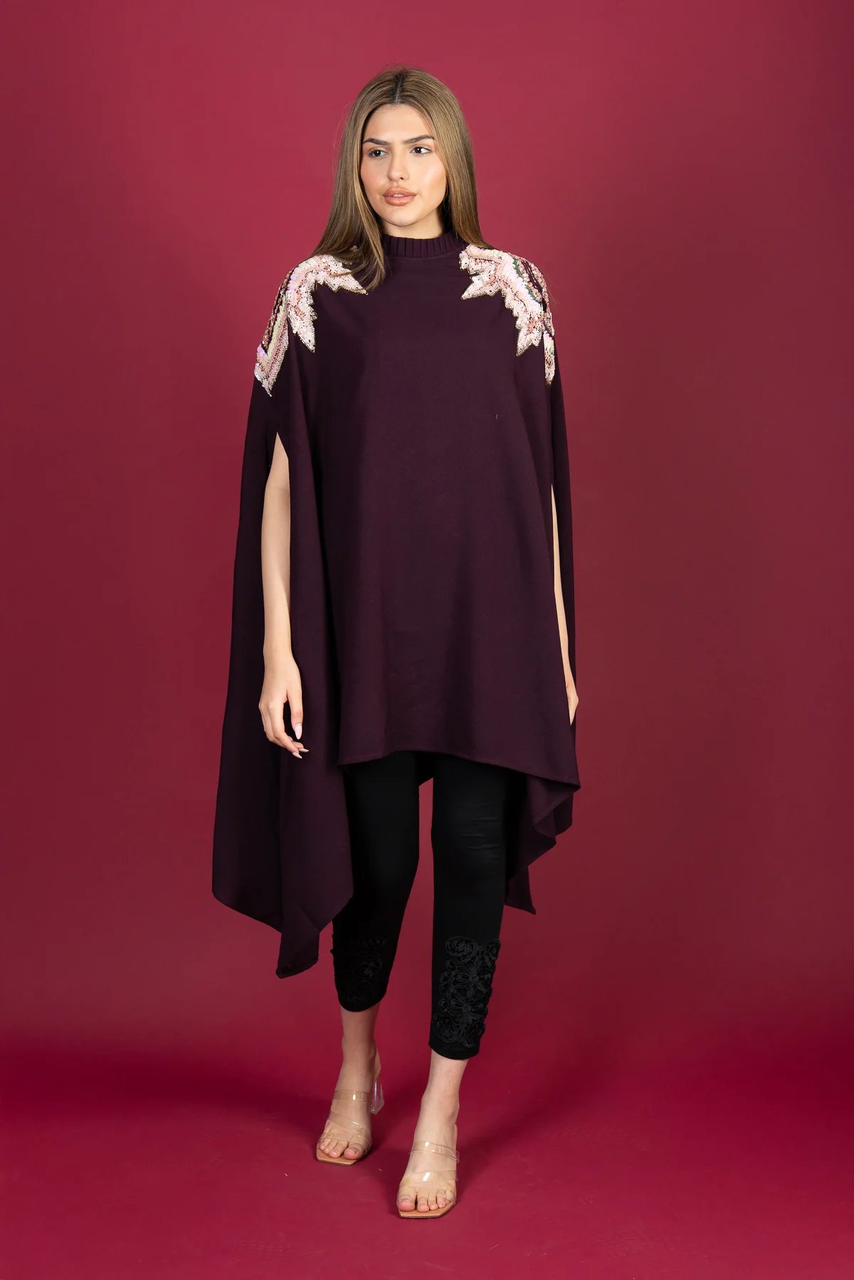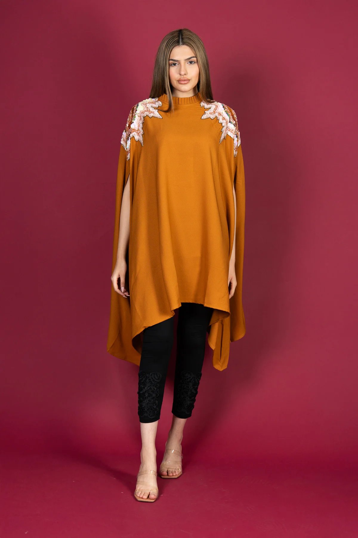 This beautiful modest short kaftan collection features a stylish short-style kaftan crafted from premium polyester. The neckline is elegantly adorned with intricate sequin detailing, adding a refined touch to the design. Perfect for Eid celebrations and special occasions, this ensemble offers both grace and sophistication.