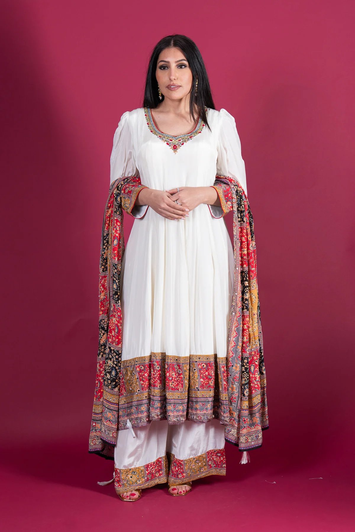 Shiffonz elegant 3 piece silk anarkai suit