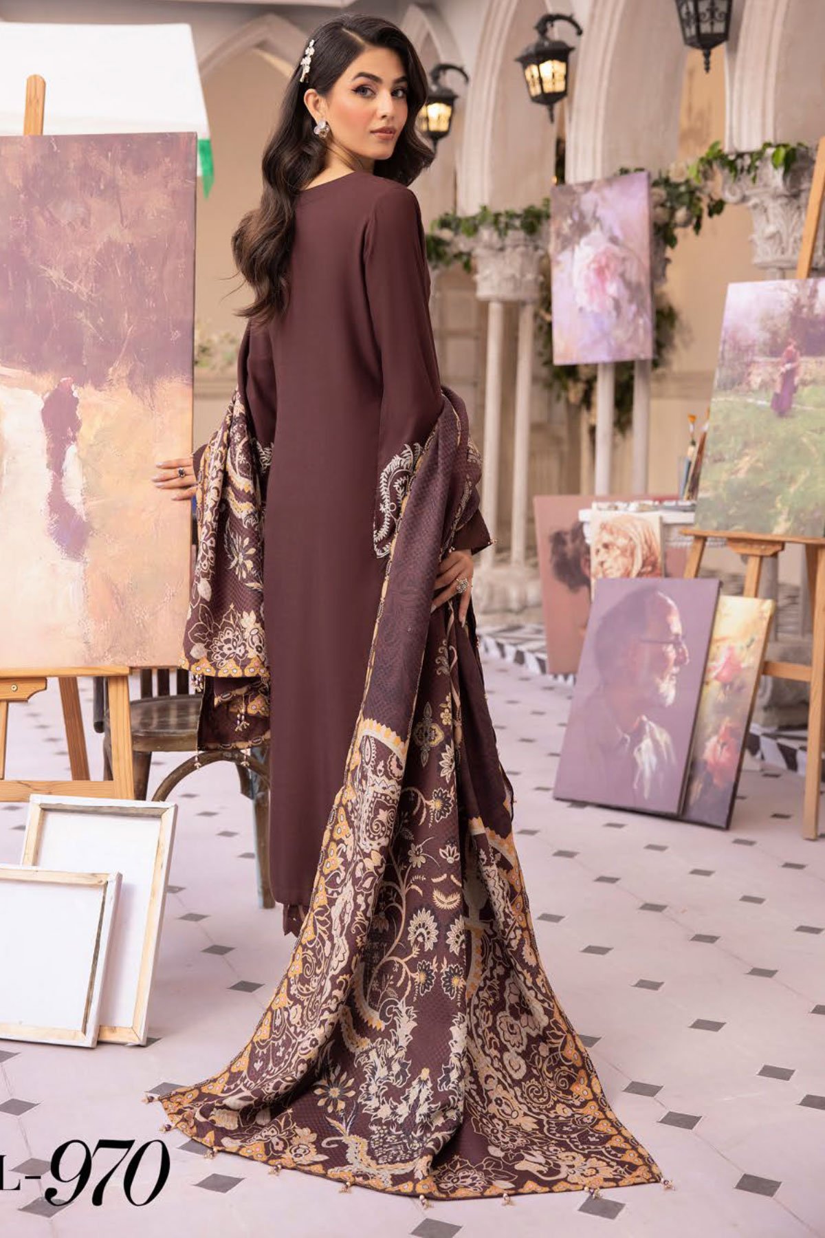 Sapna collection 3 piece dhanak suit with laser cut shawl