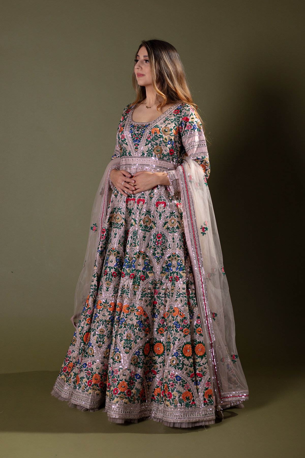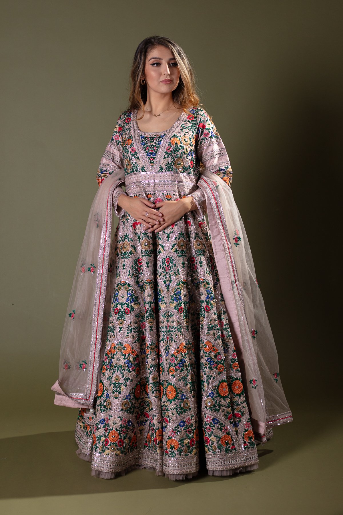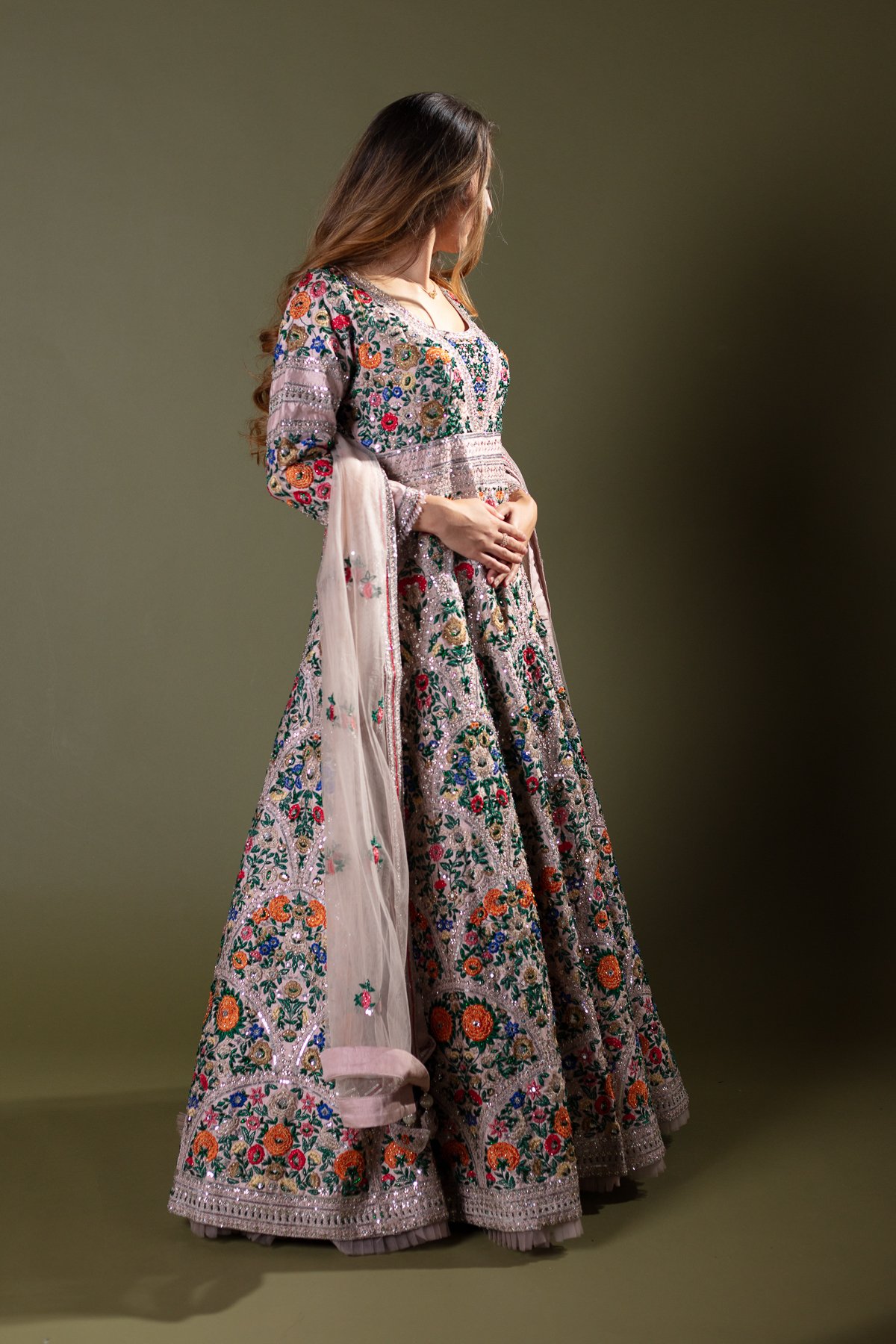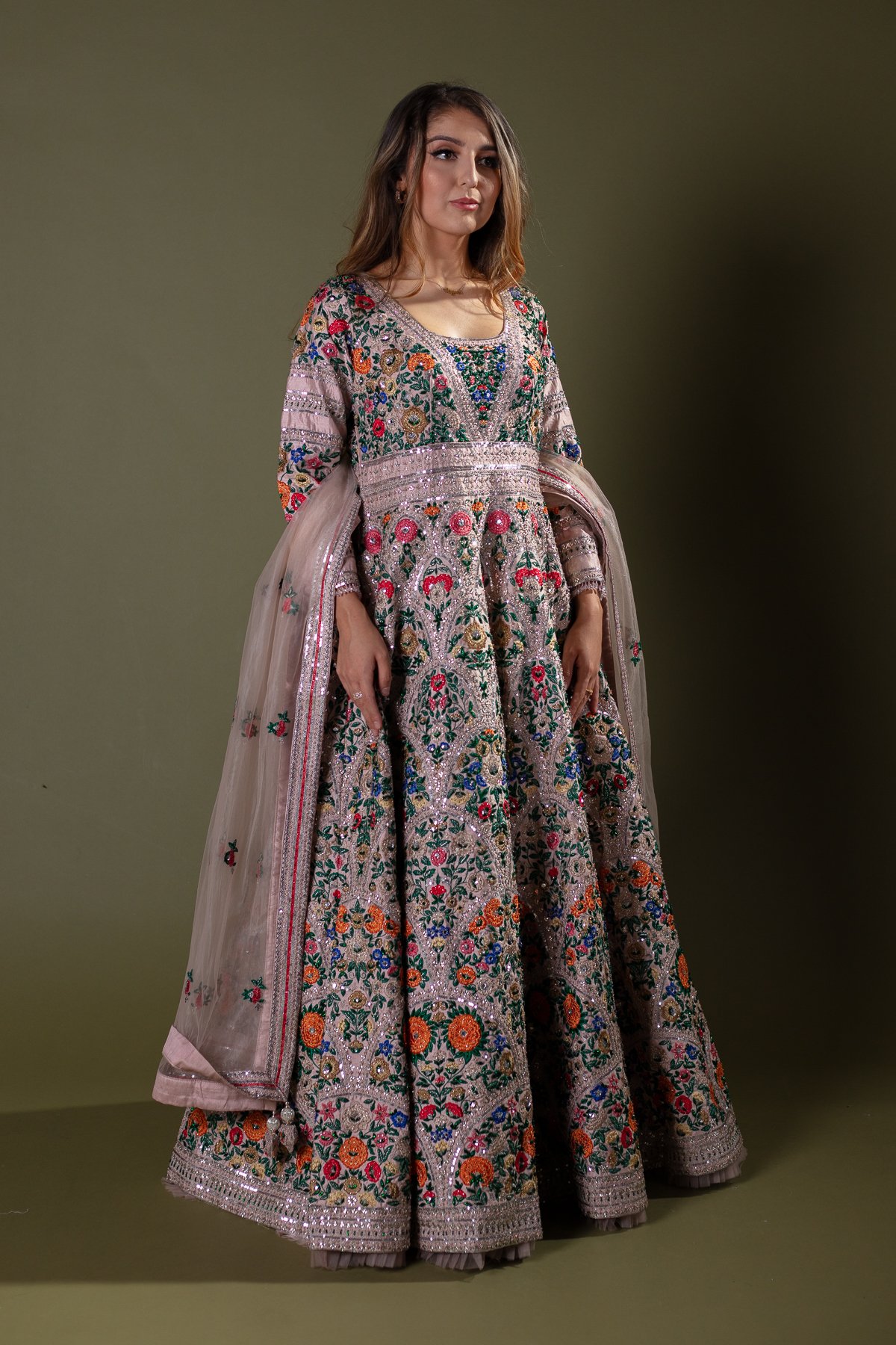 Shiffonz luxury multi thread work embroidered gown