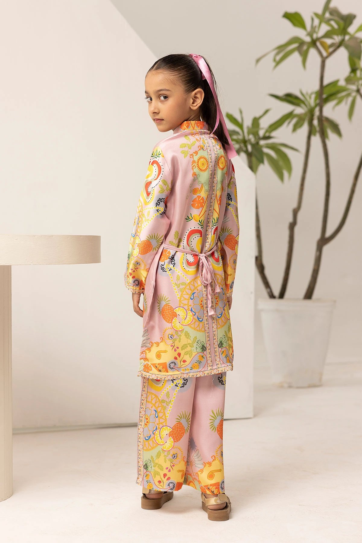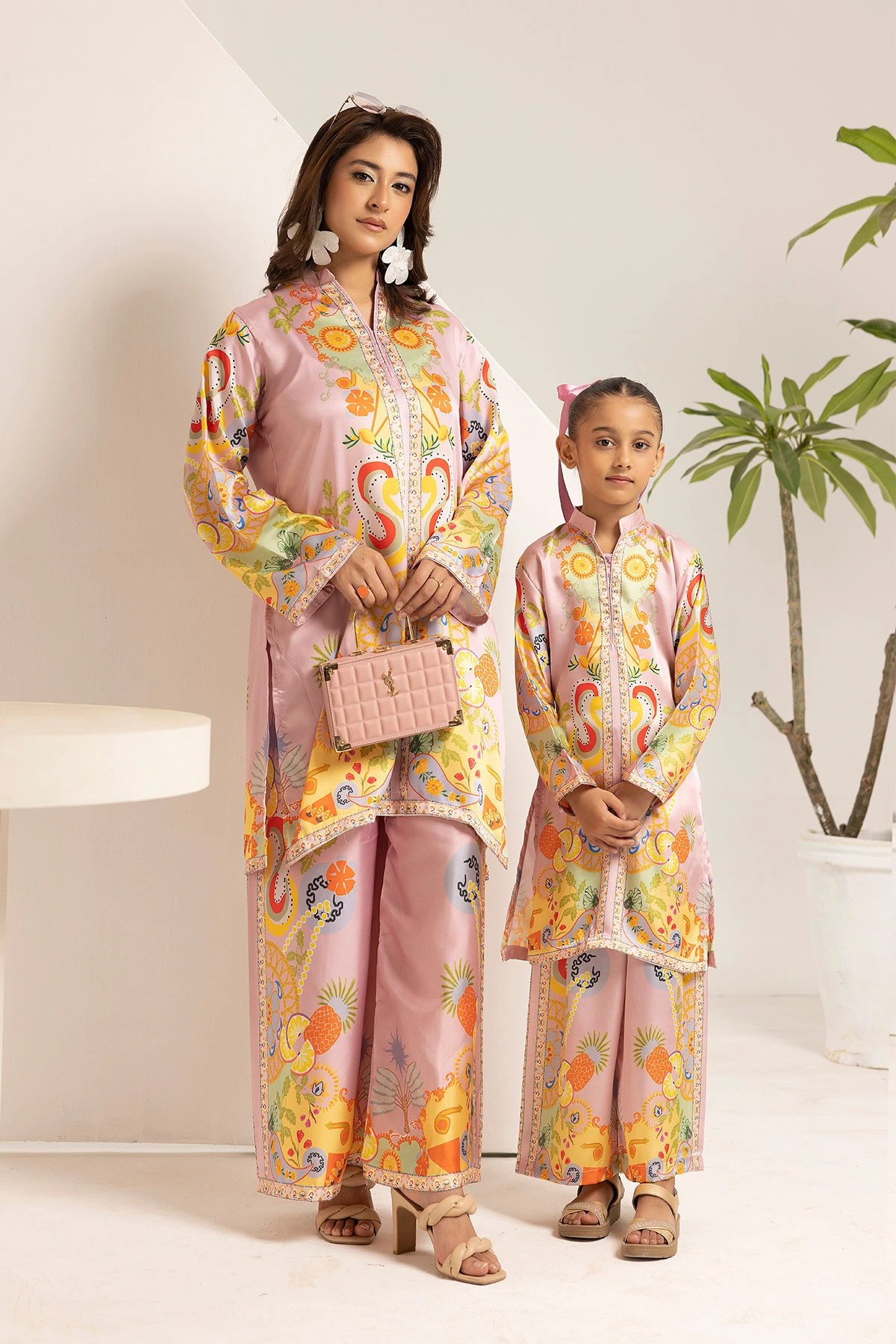 Shiffonz mother and daughter kids silk lux printed 2 piece co-ord set