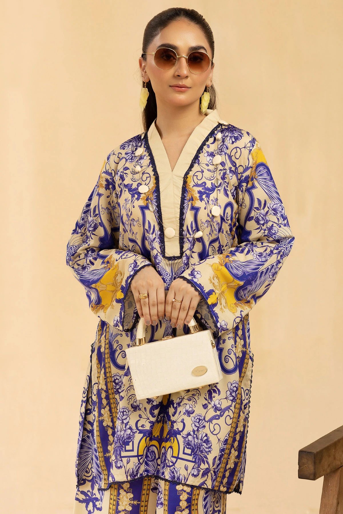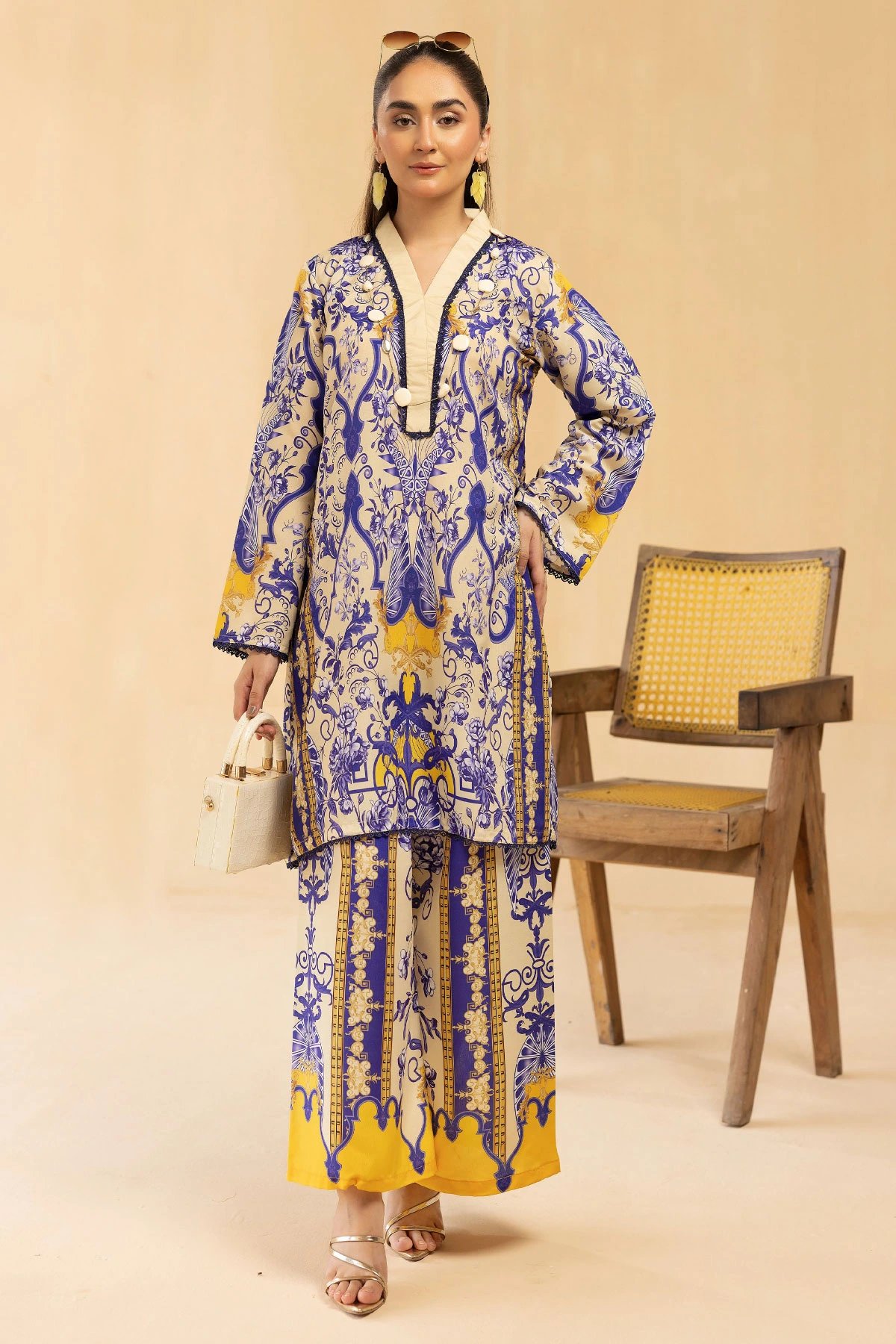 This beautiful 2-piece co-ord set is designed for effortless elegance and comfort. A straight shirt crafted from silk lawn fabric, features a captivating printed design that adds a modern and stylish touch. Paired with matching printed plazo trousers, this ensemble offers a fluid and relaxed silhouette, perfect for both casual and semi-formal occasions. A versatile addition to your wardrobe, ideal for all-day wear with a chic and contemporary appeal.