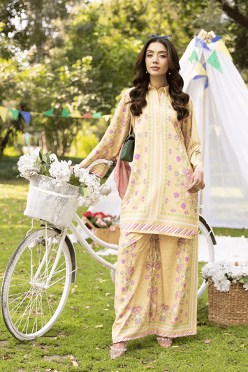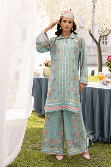 This beautiful 2-piece co-ord set is designed for effortless elegance and comfort. A straight shirt crafted from silk lawn fabric, features a captivating printed design that adds a modern and stylish touch. Paired with a printed shalwar, this ensemble offers a fluid and relaxed silhouette, perfect for both casual and semi-formal occasions. A versatile addition to your wardrobe, ideal for all-day wear with a chic and contemporary appeal.