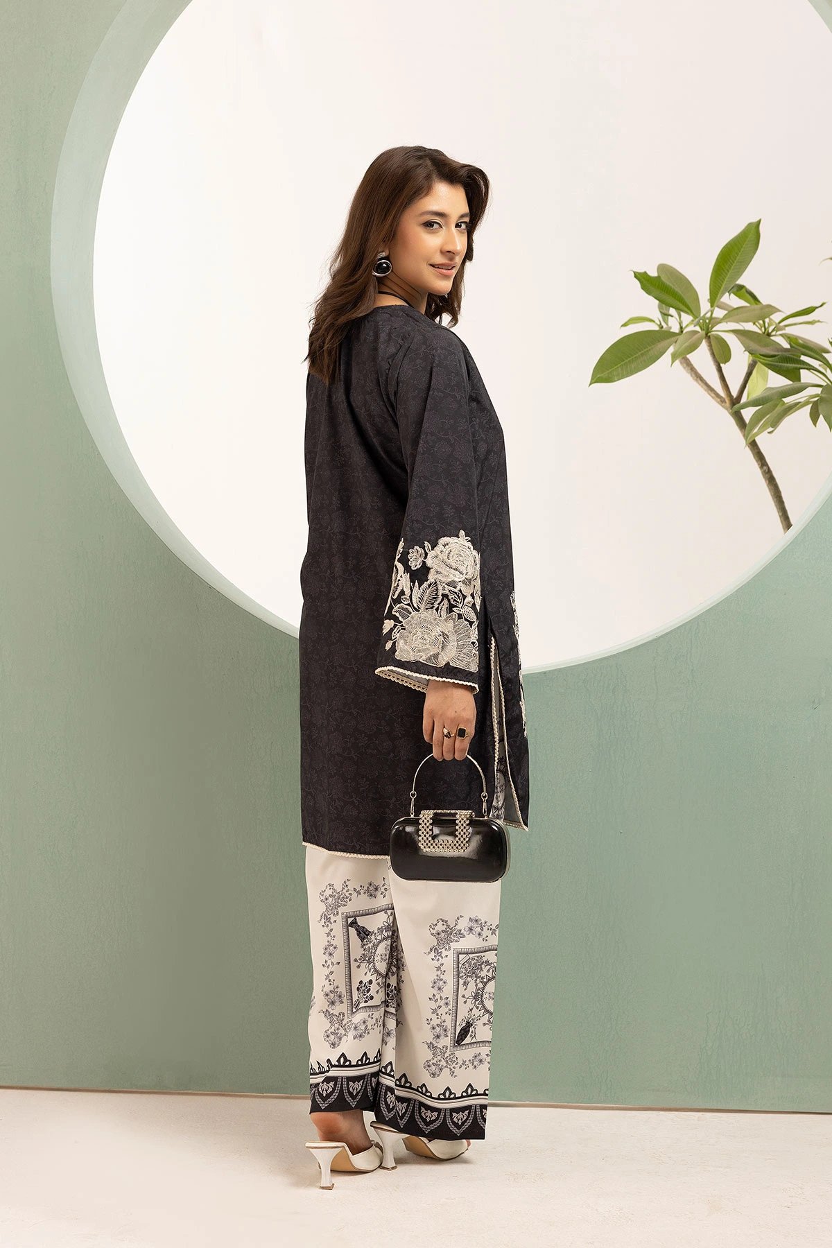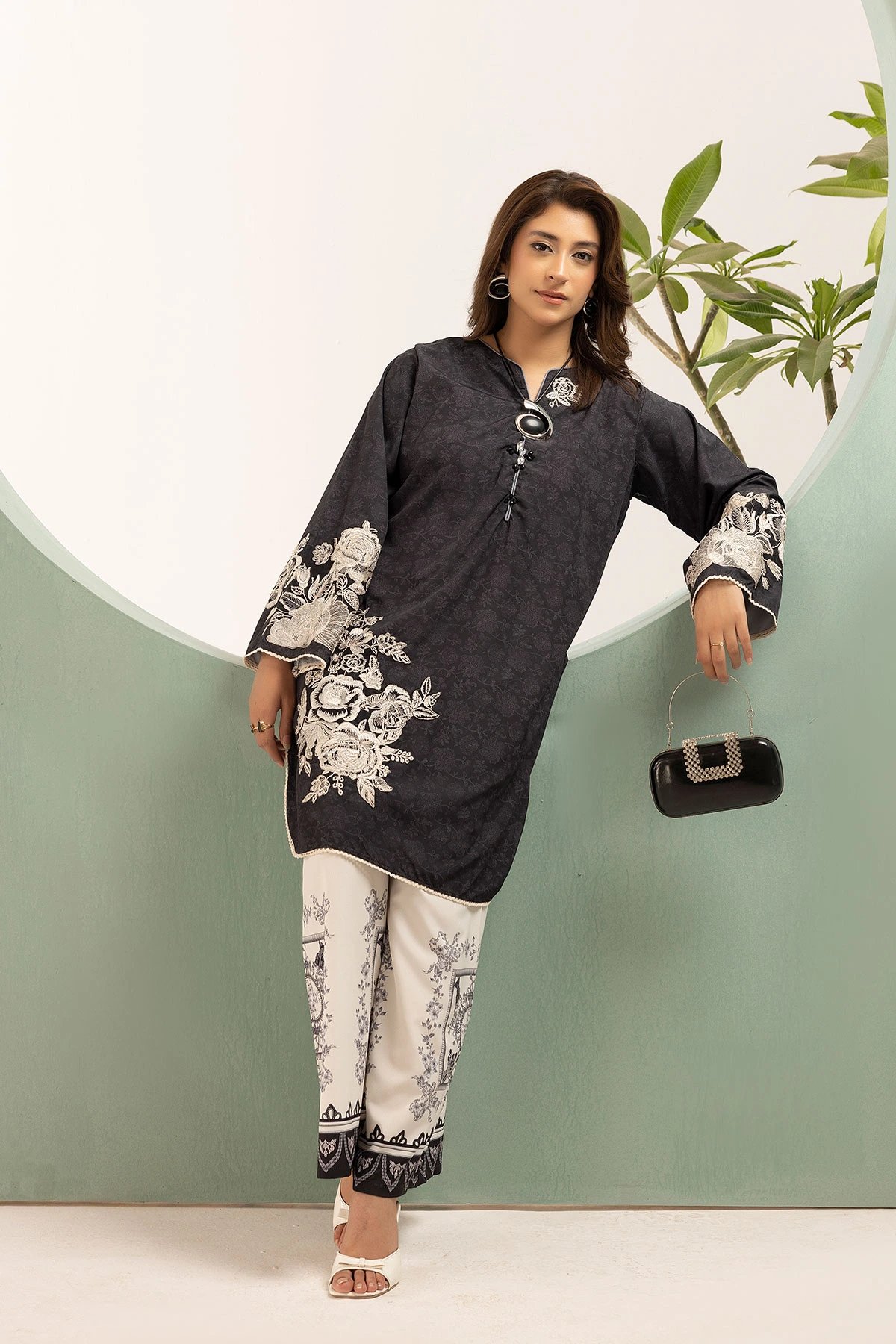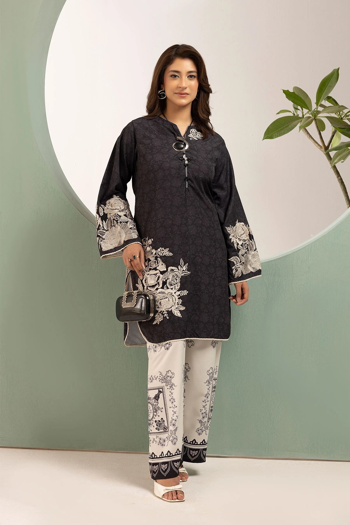 This beautiful 2-piece co-ord set is designed for effortless elegance and comfort. A straight shirt crafted from silk lawn fabric, features a captivating printed design that adds a modern and stylish touch. Paired with matching printed plazo trousers, this ensemble offers a fluid and relaxed silhouette, perfect for both casual and semi-formal occasions. A versatile addition to your wardrobe, ideal for all-day wear with a chic and contemporary appeal.