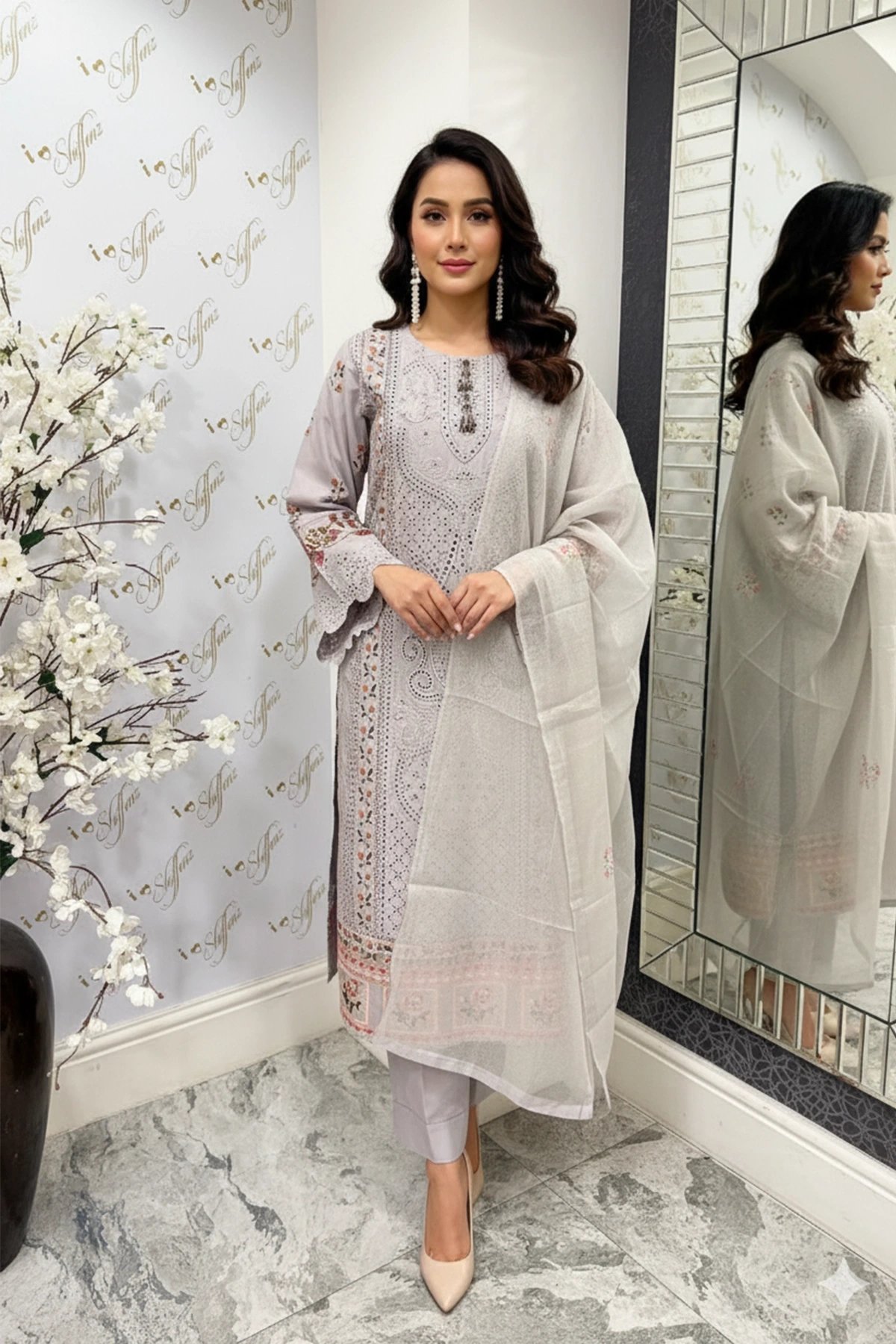 Jannat Floral collection 3 piece embroidered suit