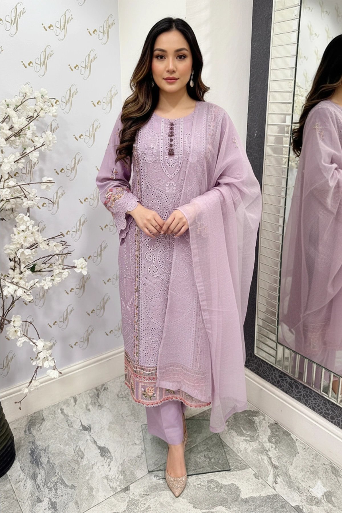 Ivana luxury chikan kari embroidered 3 piece Eid suit