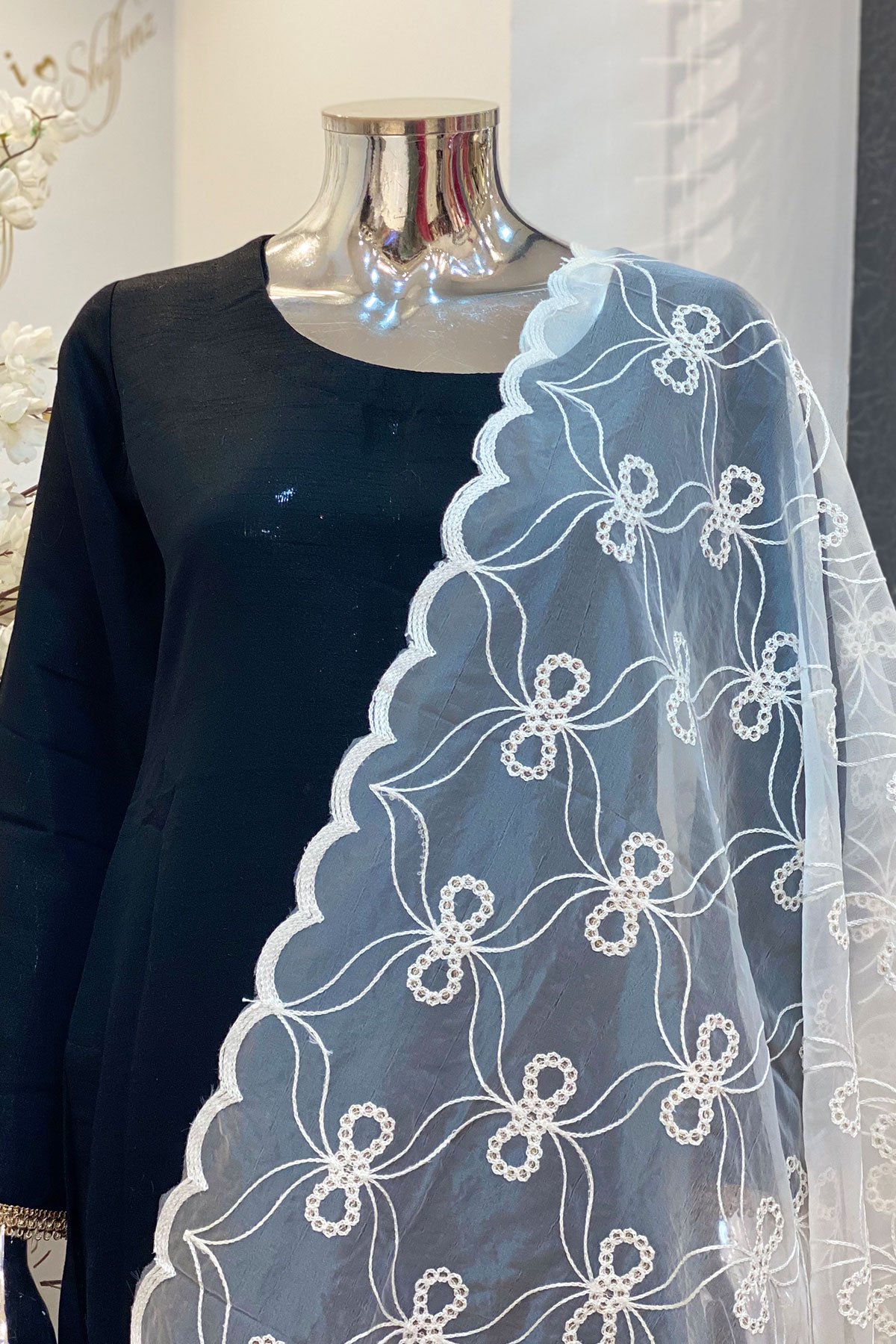 Swathe in the beauty of this organza dupatta. This sheer dupatta is adorned with thread work embroidery and sequence embellishment with in the patterns. Draping this astounding dupatta is a perfect way to enhance the look of your outfit!