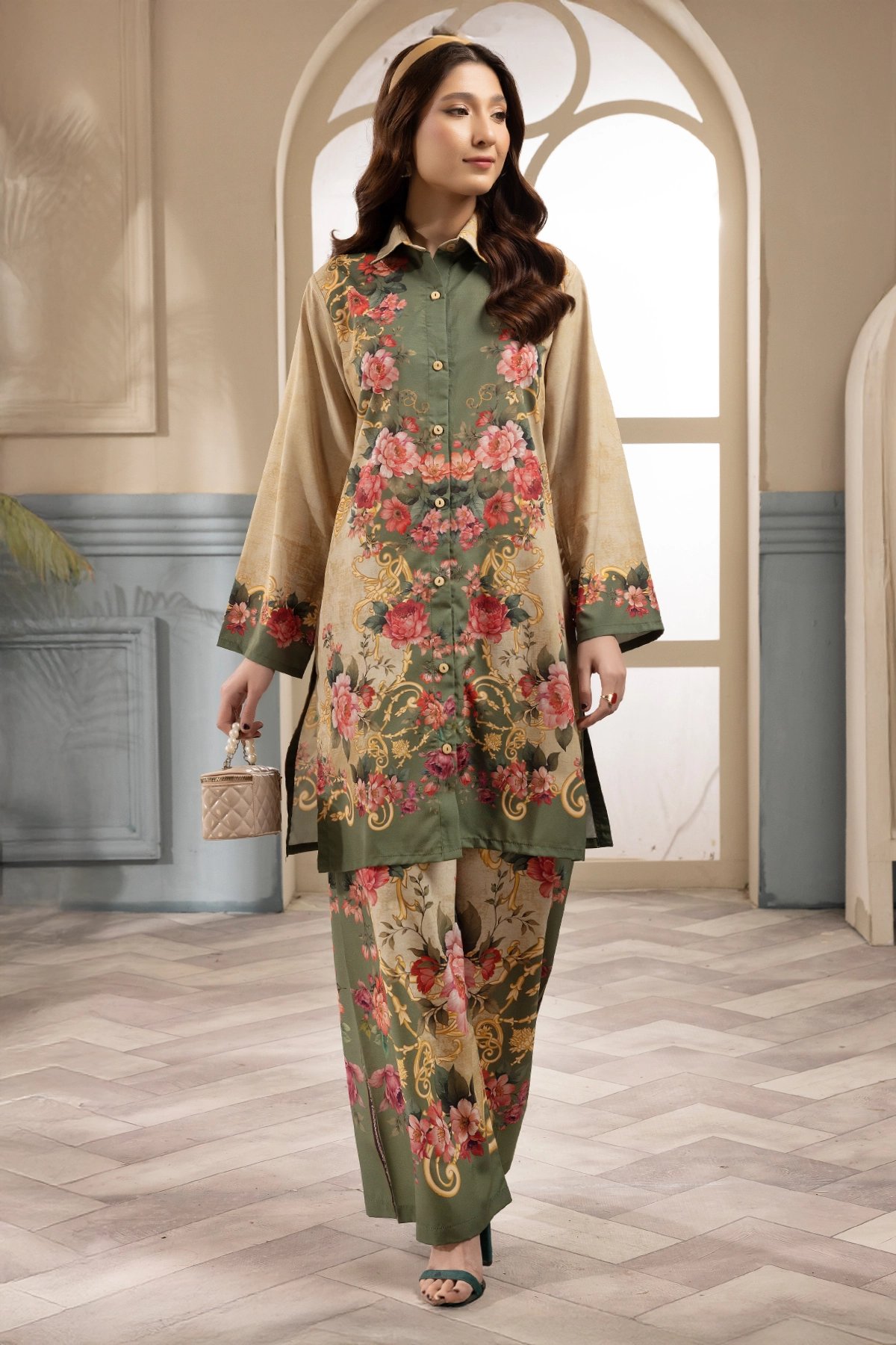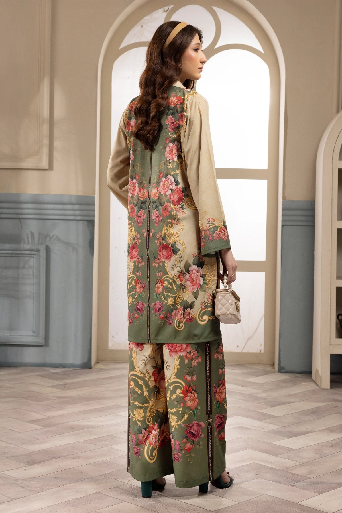 This beautiful 2-piece suit is designed for effortless elegance and comfort. The short shirt, crafted from soft polyester, features a captivating printed design that adds a modern and stylish touch. Paired with matching printed polyester plazo trousers, this ensemble offers a fluid and relaxed silhouette, perfect for both casual and semi-formal occasions. A versatile addition to your wardrobe, ideal for all-day wear with a chic and contemporary appeal. Perfect for Eid, making it an excellent choice for festive gatherings and celebrations.